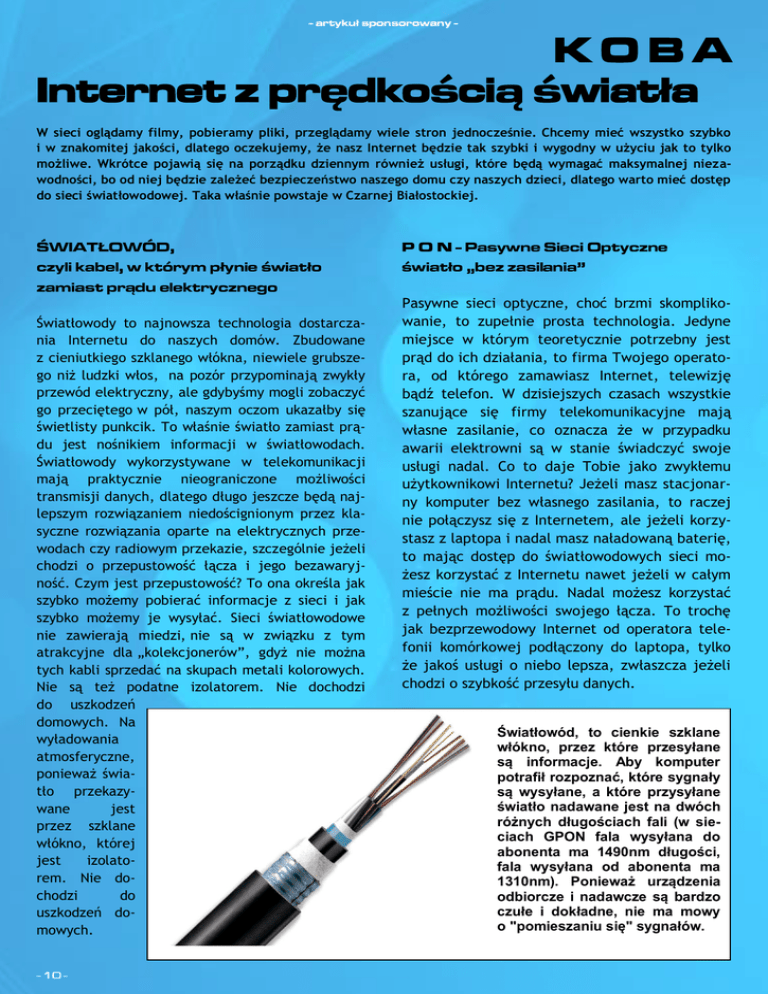 K O B A Internet z pr dko ci wiatła
