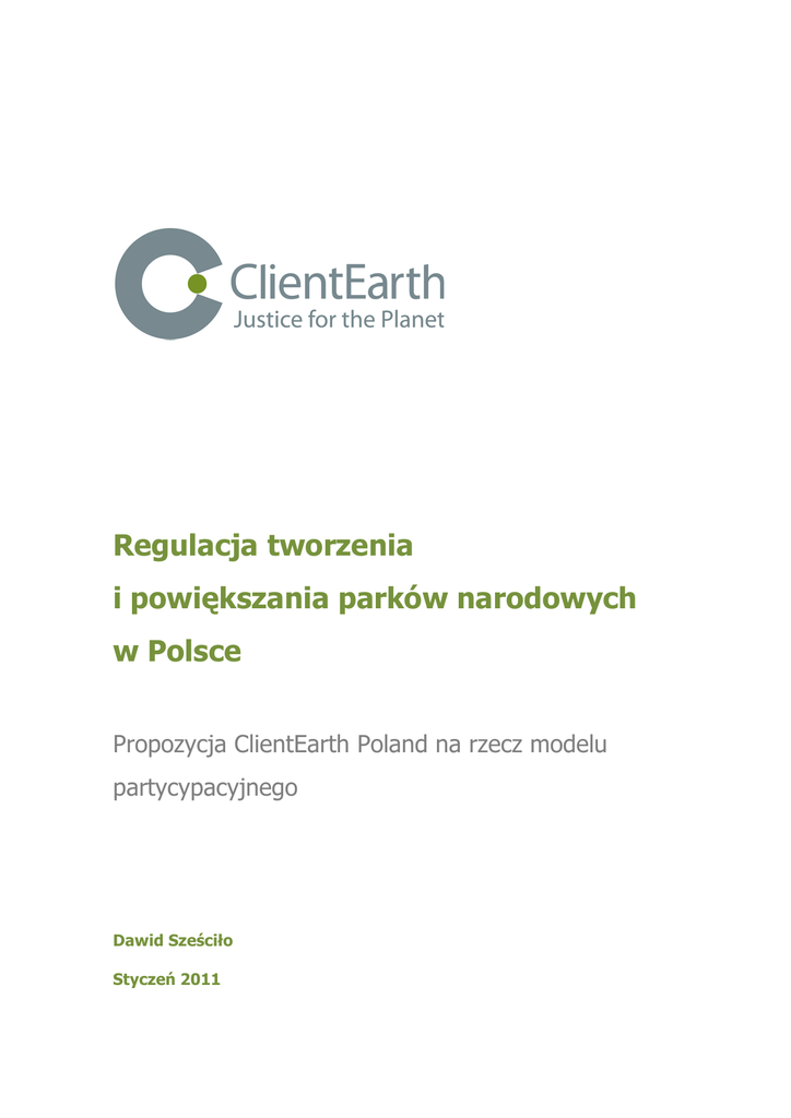 Regulacja tworzenia i powiększania parków narodowych w Polsce Propozycja ClientEarth Poland na rzecz modelu partycypacyjnego Dawid Sześciło Styczeń 2011 Regluacja tworzenia i powiększania parków narodowych w Polsce – propozycja ClientEarth Styczeń 2011 ClientEarth jest organizacją prawniczą nie działającą dla zysku, a na rzecz Ziemi z biurami w Londynie, Brukseli, Paryżu i Warszawie. Jesteśmy prawnikami zaangażowanymi w rozwiązywanie problemów ochrony środowiska poprzez łączenie prawa z nauką i polityką publiczną. Działamy jako eksperci prawa w interesie publicznym. Wzmacniamy organizacje partnerskie. Zajmujemy się zmianami klimatycznymi, energią, ochroną mórz i oceanów, bioróżnorodnością, lasami i dochodzeniem sprawiedliwości na sali sądowej. ClientEarth działa dzięki dotacjom organizacji filantropijnych, osób prywatnych oraz dzięki funduszom programu Life+ Komisji Europejskiej. www.clientearth.org Autorem prezentowanego raportu jest Dawid Sześciło we współpracy z Karlą Hill, Sandy Luk, Susie Wilks, Marcinem Stoczkiewiczem, Piotrem Turowiczem i Darią ŻebrowskąFresenbet. Raport ukończono w styczniu 2011 r. 1 Regluacja tworzenia i powiększania parków narodowych w Polsce – propozycja ClientEarth Styczeń 2011 Spis treści Podziękowania ........................................................................................................... 3 Podsumowanie ............................................................................................................4 1. Wprowadzenie........................................................................................................ 6 2. Rozwój parków narodowych w Polsce (1990-2010) .................................................... 8 2.1. Tworzenie nowych parków narodowych oraz powiększanie istniejących po 1989 roku ................................................................................................................................ 8 2.2. Zmiany regulacji w zakresie tworzenia i powiększania parków narodowych .............. 10 2.3. Obywatelska inicjatywa ustawodawcza w sprawie zmiany zasad tworzenia i powiększania parków narodowych.............................................................................. 13 3. Procedura tworzenia parków narodowych – analiza prawnoporównawcza ................... 15 3.1. Uwagi ogólne .................................................................................................... 15 3.2. Wyznaczanie obszarów chronionych w prawie Unii Europejskiej .............................. 15 3.3. Przegląd modeli tworzenia parków narodowych..................................................... 16 4. Propozycja ClientEarth .......................................................................................... 19 4.1. Założenia optymalnego modelu tworzenia i powiększania parków narodowych ......... 19 4.2. Szczegółowa propozycja regulacji ........................................................................ 22 4.3. Rekomendacje legislacyjne ................................................................................. 26 ANEKS..................................................................................................................... 27 2 Regluacja tworzenia i powiększania parków narodowych w Polsce – propozycja ClientEarth Styczeń 2011 Podziękowania Pragniemy złożyć podziękowania licznej grupie osób, które przedstawiły nam swoje cenne komentarze i uwagi do raportu. Szczególne podziękowanie składamy zespołowi Centrum Rozwiązywania Sporów i Konfliktów przy Uniwersytecie Warszawskim z szefową tego zespołu – dr Ewą Gmurzyńską, oraz członkom koalicji organizacji pozarządowych na rzecz zmiany procedury tworzenia i powiększania parków narodowych. 3 Regluacja tworzenia i powiększania parków narodowych w Polsce – propozycja ClientEarth Styczeń 2011 Podsumowanie Obowiązująca regulacja tworzenia i powiększania parków narodowych w Polsce blokuje skuteczną i pełną ochronę najcenniejszych zasobów naturalnych Polski. Po raz ostatni nowy park narodowy utworzono w Polsce w 2001 r. Trzy lata później po raz ostatni udało się powiększyć obszar istniejącego już parku. Od tego czasu proces rozszerzania obszarów podlegających ochronie w tej formie zamarł. Powodem nie jest osiągnięcie wystarczającej liczby parków narodowych. Wciąż mówi się – również w dokumentach rządowych - o potrzebie utworzenia co najmniej trzech nowych parków (Mazurskiego PN, Jurajskiego PN i Turnickiego PN) oraz powiększenia już istniejących, w szczególności Białowieskiego PN. Przeszkodą dla zmian na mapie parków narodowych w Polsce jest regulacja prawna ich tworzenia i powiększania przewidująca wymóg uzyskania zgody wszystkich zainteresowanych jednostek samorządu terytorialnego (władz gminnych, powiatowych, wojewódzkich). W ostatnim czasie władze samorządowe zablokowały próbę powiększenia Białowieskiego PN. Obywatelska inicjatywa legislacyjna złożona w Sejmie 9 listopada 2010 r. proponuje zmianę ustawy o ochronie przyrody, która odbierze samorządom prawo weta i zastąpi je prawem do opiniowania projektów tworzenia i powiększania parków. Takie rozwiązanie uznaje się za konieczne, aby przełamać obecny impas. Przedstawiony raport oferuje kompleksowe rozwiązanie problemu proceduralnych ram tworzenia i powiększania parków narodowych nakierowane na włączanie w proces decyzyjny jak najszerszej grupy zainteresowanych podmiotów oraz umożliwienie im prezentowania swoich opinii i interesów. Analiza traktuje propozycję zawarte w projekcie obywatelskim jako punkt wyjścia do sformułowania propozycji, która zwiększy szansę na jej akceptację w parlamencie i wśród zainteresowanych podmiotów. Propozycja ClientEarth bazuje na analizie procedur stosowanych w innych państwach (szczególnie w Szwecji) oraz tendencjach w zakresie tworzenia polityk publicznych i za