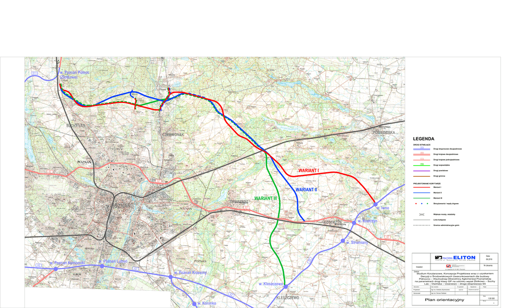 w. Poznań Północ (Złotkowo) S11 SUCHY LAS POBIEDZISKA CZERWONAK LEGENDA DROGI ISTNIEJĄCE S5 92 Drogi krajowe dwujezdniowe 11 Drogi krajowe jednojezdniowe 196 Drogi wojewódzkie WARIANT I 92 Drogi ekspresowe dwujezdniowe Drogi powiatowe Drogi gminne 92 PROJEKTOWANE KORYTARZE Wariant I WARIANT II SWARZĘDZ POZNAŃ Wariant II WARIANT III Wariant III Skrzyżowania i węzły drgowe w. Iwno 92 Większe mosty, wiadukty KOSTRZYN Linie kolejowe w. Kostrzyn Granice administracyjne gmin 92 w. Strumiany Berlin A2 w. Poznań Luboń S5 w. Poznań Komorniki PRACOWNIA Tomice ul. Szkolna 23, 62-060 St w. Poznań Krzesiny 06.2016 szew Nr zlecenia: Inwestor: A2 Data: ELITON Zadanie: Studium Korytarzowe, Koncepcja Projektowa wraz z uzyskaniem 5 w. Kleszczewo Stanowisko: Projektant: A2 w. Koninko KLESZCZEWO Imię i nazwisko: Nr uprawnień: Specjalności: Podpis 139/81/PW Skala: Plan orientacyjny 1:50 000 Nr rys.: -