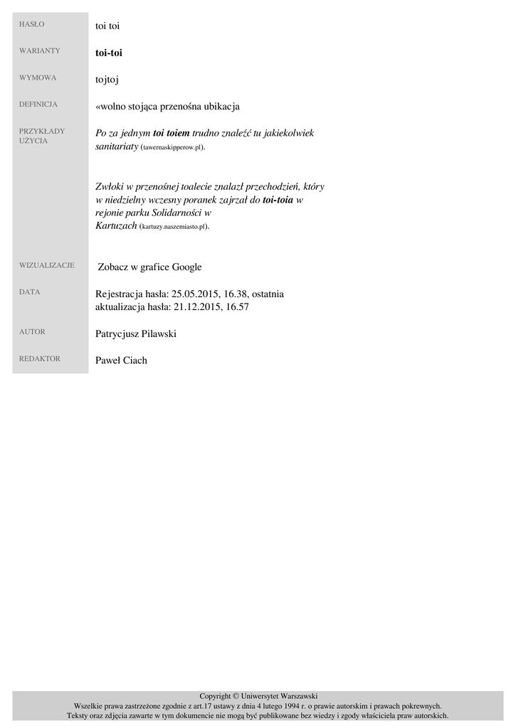 toi toi - Nowe Wyrazy - Uniwersytet Warszawski