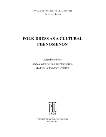 Atlas of Polish Folk Costume Special Issue FOLK DRESS AS A CULTURAL PHENOMENON Scientific editors ANNA WERONIKA BRZEZIŃSKA MARIOLA TYMOCHOWICZ POLISH ETHNOLOGICAL SOCIETY Wrocław 2013 ATLAS OF POLISH FOLK COSTUME published by the Polish Ethnological Society, ul. Fryderyka Joliot-Curie 12, 50-383 Wrocław, phone +48 375 75 83, phone/fax +48 71 375 75 84, e-mail: [email protected], www.ptl.info.pl Editor-in-chief: Anna Weronika Brzezińska Deputy editor: Justyna Słomska-Nowak Secretary editor: Mariola Tymochowicz Translators: Anna Jelec Anna Broniarek Agnieszka Marciniak Aleksandra Iwasiewicz Scientific supervision in Polish: Anna Weronika Brzezińska Mariola Tymochowicz Scientific supervision in English: Anna Weronika Brzezińska Kinga Czerwińska Reviewers: Irena Bukowska-Floreńska Katarzyna Marciniak Publishing editor: Justyna Słomska-Nowak Graphic design and typesetting: Katarzyna Tużylak Cover graphics: Julia Anastazja Sienkiewicz-Wilowska Translation of the book into English financed by the Ministry of Science and Higher Education © Copyright by Polskie Towarzystwo Ludoznawcze and Renata Bartnik, Anna Weronika Brzezińska, Hubert Czachowski, Kinga Czerwińska, Anna Czyżewska, Jolanta Dragan, Sylwia Geelhaar, Hanna Golla, Barbara Hołub, Katarzyna Ignas, Małgorzata Imiołek, Izabela Jasińska, Janusz Kamocki, Tymoteusz Krol, Małgorzata Kunecka, Małgorzata Kurtyka, Magdalena Kwiecińska, Agnieszka Ławicka, Joanna Minksztym, Alicja Mironiuk-Nikolska, Aleksandra Paprot, Elżbieta Piskorz-Branekova, Ludmiła Ponomar, Justyna Słomska-Nowak, Stanisława Trebunia--Staszel, Mariola Tymochowicz Published as part of the grant project The Atlas of Polish Folk Costume: a continuation of the publishing work, field research and source queries, as well as digitalisation of sources and sharing the information on the Internet, No. 11H 12 0261 81, financed from the resources of the National Humanities Development Programme ISBN 978-83-87266-64-6 Introduction – contemporary research problems regarding traditional dress 5 Hubert Czachowski, Justyna Słomska-Nowak Traditional costumes from another perspective… Between the aesthetic and philosophical dimensions of rustic clothing 9 Anna Weronika Brzezińska Traditional dress - from the biography of an object to the identity of the subject 15 Barbara Hołub Female headgear as a type of sign 25 Małgorzata Imiołek Objectives, functions and new research aspects of contemporary studies on traditional folk costumes (based on the paper „Folk costumes of Kielecczyzna”) 35 Alicja Mironiuk-Nikolska „Colourful hosts of reapers” - Can photographs from the first presidential harvest home elebrations in Spała in 1927 serve as material for research on traditional costume ? 45 Ludmiła Ponomar Linguistic and ethnographic research on the traditional costume of the Polesie region 51 Joanna Minksztym What has been ignored... Directions of development of the traditional fabric and costume collections; on the basis of the collection of the Ethnographic Museum in Poznań 59 Sylwia Geelhaar Reconstructing the traditional dress of Dolne Powiśle (Lower Vistula region) 69 Aleksandra Paprot Can the folk dress of Żuławy be considered traditional? 79 Janusz Kamocki Costumes of Hungarian Poles from Spisz 89 Izabela Jasińska Costumes of the participants in Harvest Home processions in villages and towns of the Opolszczyzna region (2005-2012) 91 Małgorzata Kurtyka Reconstructing the traditional dress of Zagłębie 97 Hanna Golla Traditional costume of Dolny Śląsk (Lower Silesia). Tradition vs modernity 103 Tymoteusz Król Traditional dress or folk band stage costume? Wilamowice traditional dress in contemporary times 111 Stanisława Trebunia-Staszel The chic ladies of Podhale and local fashion designers 119 Kinga Czerwińska Traditional costumes of Śląsk Cieszyński (Cieszyn Silesia): traditions, metamorphoses, perspectives 131 Magdalena Kwiecińska Cracow traditional dress in urban spaces 143 Elżbieta Piskorz-Branekova Terminology issues around the traditional costumes from the area of Hrubieszów and Tomaszów Lubelski 151 Agnieszka Ławicka The beauty is in the details. Decorative elements in the folk dress of Lubelszczyzna 161 Renata Bartnik Folk dress of Powiśle Lubelskie and its representations in Polish graphics and painting 167 Mariola Tymochowicz A typology of traditional dress varieties from the lubelskie voivodship 181 Katarzyna Ignas The Przeworsk traditional costume in the folk costume exhibition in the Przeworsk Museum vs. „Przeworsk dress” as a stage costume used by local folk performers 191 Jolanta Dragan Linen cloth in some contexts of traditional Polish culture 207 Anna Czyżewska, Małgorzata Kunecka The „Polish Folk Costumes on the Internet” Project - a classic ethnographic subject seen from a new perspective 217 References Summary (Marta Świtała) Zusammenfassungen (Sylwia Geelhaar, Tim Geelhaar) Резюме (Julia Prakofewa) 223 245 252 260 Introduction – contemporary research problems regarding traditional dress „A white russet coat with a straight or rolled collar constitutes the male dress; decorations and lapels are red, crimson or light blue. They are fastened with a belt of the same shade. (…) Boots are worn high. They wear shearling caps or straw hats, or black hats that are quite tall although with a narrow brim. The ladies of Sandomierz wear almost the same fashions as women in Cracow. If they wear fewer strings of beads it is only so that they can use more beads of different colours. The ruffs they add to their collars reach their shoulders”1. The description of traditional dress quoted above comes from the „Przyjaciel ludu” magazine published in Leszno in 1846. This is how traditional dress worn by the inhabitants of the sandomierskie region had been described. Such descriptions were typical of mid-19th century ethnic studies, because their aim was to record the functioning aspects of folk cultur