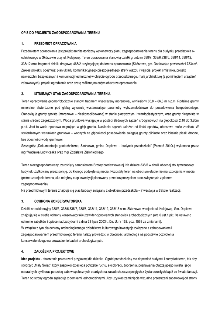 OPIS DO PROJEKTU ZAGOSPODAROWANIA TERENU 1