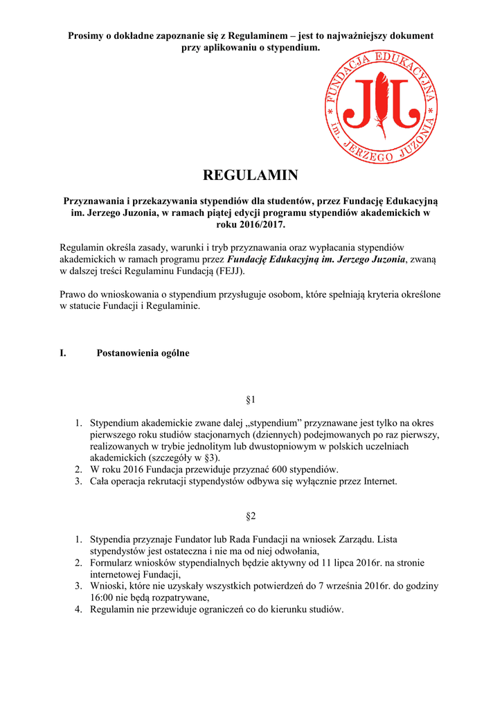 regulamin - Fundacja Edukacyjna im. Jerzego Juzonia