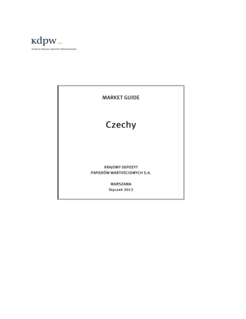 MARKET GUIDE Czechy KRAJOWY DEPOZYT PAPIERÓW WARTOŚCIOWYCH S.A. WARSZAWA Styczeń 2013 Market Guide – Czechy KDPW S.A. dołożył wszelkich starań aby informacje zawarte w niniejszym Market Guide były wiarygodne i rzetelnie przedstawione. Materiał ten ma jednak charakter wyłącznie informacyjny i KDPW S.A. nie ponosi odpowiedzialności za poprawność oraz aktualność informacji zawartych w niniejszym dokumencie, w tym za ewentualne negatywne konsekwencje decyzji i działań podjętych na ich podstawie. Informacje podatkowe mają jedynie charakter informacyjny i nie stanowią opinii prawnej, ani usług doradztwa podatkowego, finansowego lub inwestycyjnego w rozumieniu przepisów polskich lub zagranicznych. KDPW S.A. zaleca klientom skorzystanie z profesjonalnego doradztwa prawnego, w tym potwierdzenia informacji prawnopodatkowych zawartych w niniejszym dokumencie przez zewnętrzny podmiot lub osobę, która zawodowo świadczy pomoc prawną w zakresie właściwego prawa podatkowego. KDPW S.A. zastrzega sobie prawo zmiany informacji zawartych w niniejszym dokumencie bez wcześniejszego powiadomienia. Dokument stanowi własność KDPW S.A. i jest przedmiotem praw autorskich KDPW S.A. Informacje zawarte w Market Guide nie stanowią oferty, zaproszenia do rokowań ani innych podobnych zobowiązań. KDPW S.A. 2 Warszawa, 2013 Market Guide – Czechy SPIS TREŚCI 1. INFORMACJE OGÓLNE ........................................................................................................... 5 1.1 2. INSTYTUCJE I ORGANIZACJE – UCZESTNICY RYNKU FINANSOWEGO ................................. 5 1.1.1 ORGANIZATORZY RYNKU PAPIERÓW WARTOŚCIOWYCH ............................................... 5 1.1.2 INFRASTRUKTURA ROZLICZENIOWO–ROZRACHUNKOWA.............................................. 6 1.1.3 NADZÓR RYNKOWY ......................................................................................................... 6 1.1.4 BANK CENTRALNY ............................................................................................................ 6 INFORMACJE SZCZEGÓŁOWE ................................................................................................. 7 2.1 ROZLICZENIE, ROZRACHUNEK I DEPOZYT PAPIERÓW WARTOŚCIOWYCH ......................... 7 2.1.1 2.2 OPIS SYSTEMU ................................................................................................................. 7 PODMIOTY BIORĄCE UDZIAŁ W TRANSFERZE PORTFELA PAPIERÓW WARTOŚCIOWYCH... 8 POMIĘDZY RYNKIEM CZESKIM A POLSKIM .................................................................................... 8 2.2.1 PROCES TRANSFERU PAPIERÓW WARTOŚCIOWYCH Z RYNKU CZESKIEGO .................... 9 2.2.2 PROCES TRANSFERU PAPIERÓW WARTOŚCIOWYCH NA RYNEK CZESKI ....................... 10 2.2.3 DANE DOTYCZĄCE POŚREDNIKÓW................................................................................ 11 2.2.4 CHARAKTERYSTYKA POŁĄCZENIA OPERACYJNEGO ....................................................... 11 2.2.5 PRZEKAZYWANIE INSTRUKCJI ........................................................................................ 12 2.2.6 SPECYFIKACJA INSTRUKCJI – ZESTAWIENIE WYMOGÓW .............................................. 13 2.3 WYKONYWANIE PRAW Z PAPIERÓW WARTOŚCIOWYCH ............................................... 15 2.3.1 WALNE ZGROMADZENIE ............................................................................................... 16 2.3.2 WYPŁATA DYWIDENDY .................................................................................................. 17 2.3.3 PROCEDURA WYPŁATY ŚRODKÓW PIENIĘŻNYCH.......................................................... 18 2.3.4 ZASADY KOMPENSACJI POŻYTKÓW (MARKET CLAIMS) ................................................ 18 KDPW S.A. 3 Warszawa, 2013 Market Guide – Czechy ZESTAWIENIE INFORMACJI PODSTAWOWYCH 72457 NUMER RACHUNKU POŁĄCZENIE ZA POŚREDNICTWEM ICSD FREE OF PAYMENT (FoP) TYP POŁĄCZENIA OPERACYJNEGO ICSD CBL DEPOZYTARIUSZ (Pośrednik pomiędzy CBL a CDCP) CITIBANK LOKALNY CSD CDCP CYKL ROZRACHUNKOWY AKCJI T+3 STAWKA PODATKU OD DYWIDENDY 35% WYPŁATA DYWIDENDY KDPW S.A. PAYMENT PERIOD 4 Warszawa, 2013 Market Guide – Czechy 1. INFORMACJE OGÓLNE 1.1 INSTYTUCJE I ORGANIZACJE – UCZESTNICY RYNKU FINANSOWEGO 1.1.1 ORGANIZATORZY RYNKU PAPIERÓW WARTOŚCIOWYCH Rynek regulowany / MTF Prague Stock Exchange (PSE) Adres: Rybna 14 110 05 Prague 1 Czech Republic Tel. +420 221 831 111 Fax: ------------ www: www.pse.cz e-mail: [email protected] Prague Stock Exchange jest odpowiedzialna za organizację oraz zarządzanie czeską giełdą papierów wartościowych. RM-System a. s. Adres: Millenium Plaza V Celnici 10 117 21 Praha 1 Czech Republic Tel. +420 2 66198 111 Fax: +420 2 66198 607 www: www. rmsystem.cz e-mail: [email protected] Publiczny rynek pozagiełdowy organizowany jest przez RM-System Joint-Stock Co. KDPW S.A. 5 Warszawa, 2013 Market Guide – Czechy 1.1.2 INFRASTRUKTURA ROZLICZENIOWO–ROZRACHUNKOWA Centralny depozyt Central Securities Depository (CDCP) Adres: Rybna 14 110 05 Prague 1 Czech Republic Tel. +420 221 831 111 Fax: --------- www: www.centraldepository.cz e-mail: [email protected] Powołany w roku w roku 2009 w miejsce dawnego UNIVYC Central Securities Depository prowadzi działalność w zakresie rozliczenia i rozrachunku transakcji zawieranych na Prague Stock Exchange, Power Exchange Central Europe, a.s. (PXE). transakcji OTC oraz rejestrowania instrumentów finansowych. Od roku 2010 r. CDCP przejął także rejestry prowadzone wcześniej przez SCP. 1.1.3 NADZÓR RYNKOWY W lutym 2006 Narodowy Bank Czeski przejął zadania czeskiej Komisji papierów Wartościowych (CSC), Biura Państwowego Nadzoru nad Ryniem Ubezpieczeń i Funduszami Emerytalnymi Ministerstwa Finansów (UDPP) oraz Biura Nadzoru Instytucji Kredytowych (UDDZ). 1.1.4 BANK CENTRALNY ČESKÁ NÁRODNÍ BANKA (CNB) Adres: Na Příkopě 28 115 03 Praha Czech 