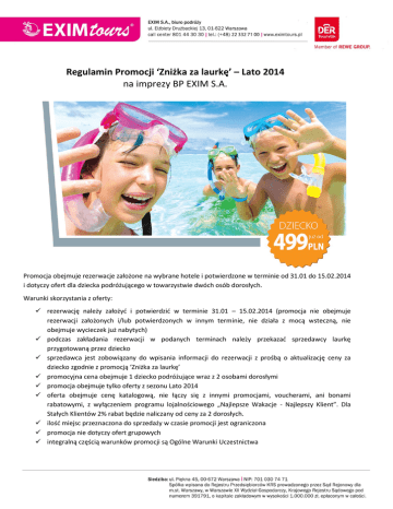 Regulamin Promocji `Zniżka za laurkę` – Lato 2014