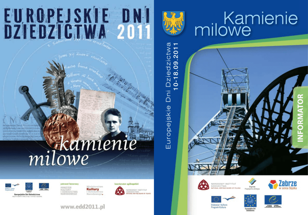 INFORMATOR Europejskie Dni Dziedzictwa 10-18.09.2011 Kamienie milowe Informator opracowany w Narodowym Instytucie Dziedzictwa w Oddziale Terenowym w Katowicach ul. Mickiewicza 29, 40-085 Katowice, tel. 32 2072400 – 02 e-mail: [email protected] www.zabytek.pl www.nid.pl Opracowanie: Joanna Banik Fotografie: OT NID w Katowicach, Organizatorzy, D. Bajowska, K. Czartoryski, D. Walerjański, T. Zajchowski Na okładce: ZKWK „Guido” w Zabrzu, fot. UM w Zabrzu Projekt okładki: Marek Krajewski Opracowanie graficzne, skład, łamanie: Marek Krajewski patronat honorowy: WOJEWODA ŚLĄSKI, MARSZAŁEK WOJEWÓDZTWA ŚLĄSKIEGO, PREZYDENT MIASTA ZABRZE Publikacja sfinansowana ze środków Miasta Zabrze Szanowni Państwo, zachęcam Państwa do aktywnego udziału w Europejskich Dniach Dziedzictwa – największym w Europie projekcie społecznym i edukacyjnym oraz najważniejszym święcie zabytków kultury województwa śląskiego. Europejskie Dni Dziedzictwa pozwalają odkryć historię naszego regionu, poznać jego bogactwo kulturowe oraz dowiedzieć się, jak niegdyś wyglądało życie naszych ojców. To także wspaniała okazja do zwrócenia uwagi na wkład Rzeczypospolitej w rozwój Europy na przestrzeni dziejów oraz zwiedzenia miejsc, do których dostęp na co dzień bywa ograniczony. Inicjatywa promująca regionalne dziedzictwo kulturowe organizowana jest już po raz kolejny w województwie śląskim. Jednak tegoroczna edycja – przebiegająca pod hasłem „Kamienie milowe” – jest szczególna, bowiem imprezy towarzyszące Europejskim Dniom Dziedzictwa odbywają się w ramach polskiej prezydencji w Radzie Unii Europejskiej. W Regionie nie brak symbolicznych „kamieni milowych”, które dokumentują historię naszej ziemi. XIV-wieczny zamek piastowski w Będzinie, Zabytkowa Kopalnia „Ignacy” w Rybniku, osiedle robotnicze „Nikiszowiec” w Katowicach czy Zabytkowa Stacja Wodociągowa „Zawada” w Karchowicach, to tylko niektóre z nich. Warto tu podkreślić, że zapewne najważniejszym „kamieniem milowym” było odkrycie pokładów węgla – „czarnego złota” Śląska, które umożliwiło tak prężny rozwój naszego regionu. Mam nadzieję, że mieszkańcy województwa śląskiego na nowo odkryją skarby regionu śląskie obyczaje, święta i tradycje, które są świadectwem naszej przeszłości i bez wątpienia zasługują na wyeksponowanie na arenie międzynarodowej. Życzę Państwu przyjemnego zwiedzania spuścizny naszej Małej Ojczyzny w ramach organizowanych Europejskich Dni Dziedzictwa. Zygmunt Łukaszczyk Wojewoda Śląski Zabrze, 10 września 2011 r. Szanowni Państwo, „Kamienie milowe”, to temat tegorocznych Europejskich Dni Dziedzictwa. Bez wątpienia odkrycie pokładów węgla było dla Śląska i Zabrza kamieniem milowym. Dzięki temu rozpoczął się okres niespotykanego rozwoju przemysłu, rozwoju cywilizacyjnego. Kopalnie, huty, zakłady przemysłowe stały się przez wieki nieodłącznym elementem krajobrazu naszej ziemi. Wysoka kultura przemysłowa i bogactwo naturalne w powiązaniu z tradycją stanowią korzenie, z których czerpiemy do dzisiaj. Dorobek i trud wielu pokoleń budzi szacunek i dumę. Mimo transformacji i zamknięcia wielu kopalń, węgiel nadal jest ważnym składnikiem gospodarki Śląska i Polski. Nowe technologie wydobycia i przetwarzania tego surowca, stwarzają korzystne perspektywy rozwoju. Niektóre nieczynne już kopalnie wraz z otaczającymi terenami podlegają rewitalizacji, zmienia się ich funkcja. Stają się nie tylko świadkami historii, „kamieniami milowymi” rozwoju, ale także obiektami turystycznymi, kulturalnymi i edukacyjnymi. Dobrym przykładem jest Szlak Zabytków Techniki Województwa Śląskiego. W ponad trzydziestu niezwykłych obiektach możemy przeżyć przygodę z historią, poznać osiągnięcia techniki, „dotknąć” tradycji czy uczestniczyć w wydarzeniach kulturalnych. Wśród tych magicznych miejsc są nie tylko zakłady górnicze, takie jak Zabytkowa Kopalnia Węgla Kamiennego Guido w Zabrzu czy Sztolnia Czarnego Pstrąga w Tarnowskich Górach, ale także obiekty pokazujące wszystkie aspekty techniki służącej człowiekowi. Warto je zwiedzić, warto poznawać nasze dziedzictwo, które jest ważnym elementem kultury europejskiej. Niech Europejskie Dni Dziedzictwa z bogactwem propozycji dla każdego, są również przypomnieniem obowiązku kultywowania i wracania do korzeni, do dorobku przodków. Małgorzata Mańka – Szulik Prezydent Miasta Zabrze Program Otwarcia Europejskich Dni Dziedzictwa na Śląsku Zabytkowa Kopalnia Węgla Kamiennego Guido 41-800 Zabrze, ul. 3 Maja 93 13:00 – uroczyste otwarcie Europejskich Dni Dziedzictwa, 13:15 – konferencja prasowa z udziałem Wojewody Śląskiego, Marszałka Województwa Śląskiego, Prezydent Miasta Zabrze, 14:00 – „Kamienie milowe w rozwoju Zabrza” - prelekcja autorstwa Dariusza Walerjańskiego, 14:30 – 16:00 – zwiedzanie kopalni GUIDO z przewodnikiem. Więcej informacji na: www.kopalniaguido.pl 10–18. 09.2011 Będzin Bieńkowice 17. 09.2011 W sobotę 17 września 2011 r. w godz. 9.00 – 18.00 Muzeum Zagłębia w Będzinie znajdujące się w XIV-wiecznym zamku piastowskim zostanie otwarte dla turystów. Przewodnicy będą oprowadzać po zamku o godz. 10.00 i 16.00. Ponadto proponujemy dwa spacery edukacyjne: • z archeologiem o godz. 11.00 pod hasłem „Miasto Będzin zanim powstało – kamienie milowe będzińskiego średniowiecza”, który będzie czekał przy wejściu do zamku. • z historykiem o godz. 12.00 pod hasłem „Ścieżkami Będzina – kamienie milowe w historii miasta”, który będzie czekał na dziedzińcu zamku. Wstęp wolny. Serdecznie zapraszamy! Zamek w Będzinie położony jest na skarpie, na lewym brzegu Czernej Przemszy w pobliżu trasy E75 Katowice-Warszawa i nieco na północ od drogi E40 w kierunku Krakowa. U podnóża zamku znajduje się obszerny parking (przy rzece Czarna Przemsza). Or