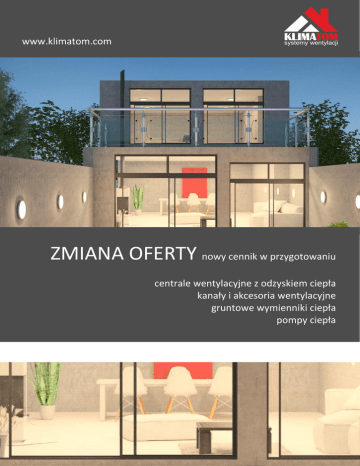 www.klimatom.com systemy wentylacji ZMIANA OFERTY nowy cennik w przygotowaniu centrale wentylacyjne z odzyskiem ciepła kanały i akcesoria wentylacyjne gruntowe wymienniki ciepła pompy ciepła