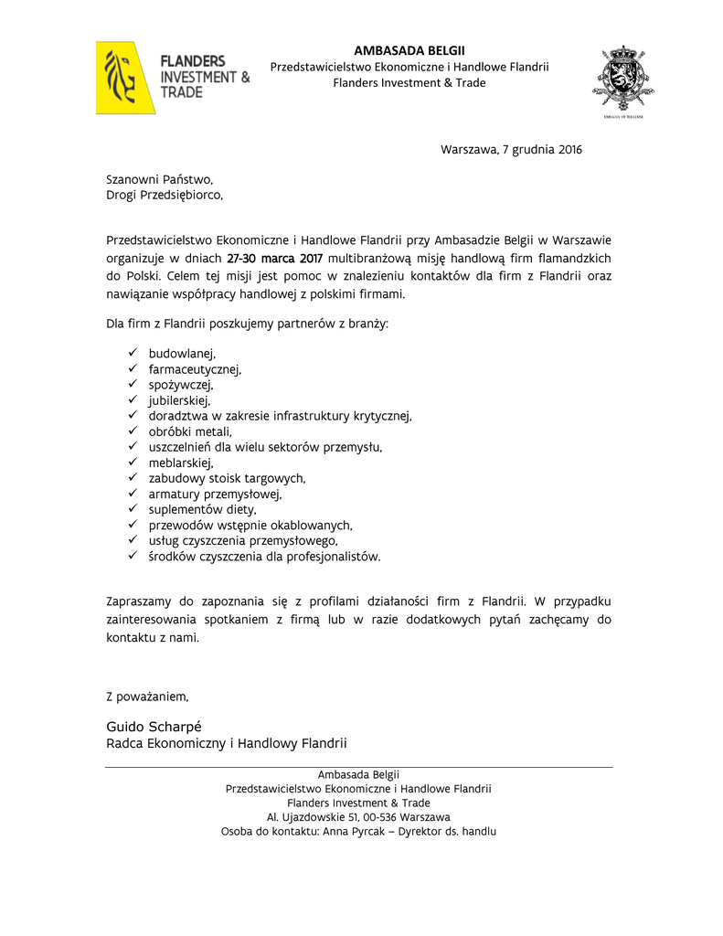 AMBASADA BELGII Radca Ekonomiczny i Handlowy Flandrii