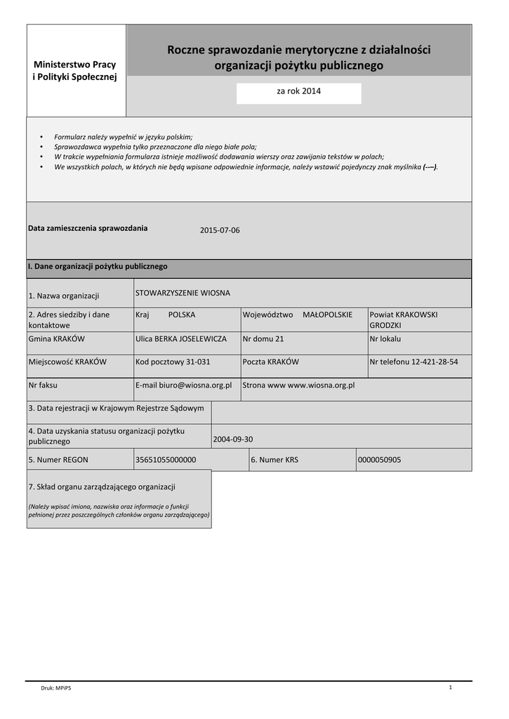 Roczne sprawozdanie merytoryczne z działalności organizacji