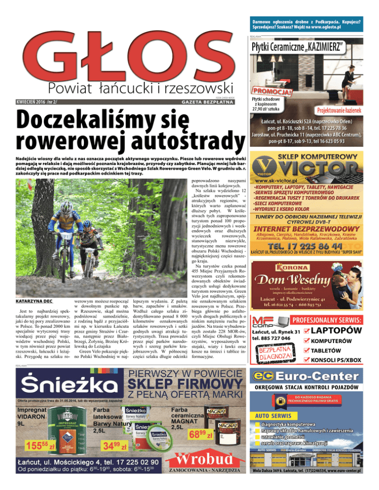 Darmowe ogłoszenia drobne z Podkarpacia. Kupujesz? Sprzedajesz? Szukasz? Wejdź na www.oglosto.pl REKLAMA ISSN 2450-405X KWIECIEŃ 2016 /nr 2/ Doczekaliśmy się rowerowej autostrady Nadejście wiosny dla wielu z nas oznacza początek aktywnego wypoczynku. Piesze lub rowerowe wędrówki pomagają w relaksie i dają możliwość poznania krajobrazów, przyrody czy zabytków. Planując mniej lub bardziej odległą wycieczkę, nie sposób skorzystać z Wschodniego Szlak Rowerowego Green Velo. W grudniu ub. r. zakończyły się prace nad podkarpackim odcinkiem tej trasy. KATARZYNA DEC Jest to najbardziej spektakularny projekt rowerowy, jaki do tej pory zrealizowano w Polsce. To ponad 2000 km specjalnie wytyczonej trasy wiodącej przez pięć województw wschodniej Polski, w tym również przez powiat rzeszowski, łańcucki i leżajski. Przygodę na szlaku roREKLAMA werowym możesz rozpocząć w dowolnym punkcie np. w Rzeszowie, skąd można podróżować samodzielnie, z rodziną bądź z przyjaciółmi np. w kierunku Łańcuta przez gminy Strażów i Czarna, następnie przez Białobrzegi, Żołynię, Brzózę Królewską do Leżajska Green Velo pokazuje piękno Polski Wschodniej w naj- lepszym wydaniu. Z paletą barw, zapachów i smaków. Wzdłuż całego szlaku zidentyfikowano ponad 8 000 kilometrów oznakowanych szlaków rowerowych i setki godnych uwagi atrakcji turystycznych. Trasa prowadzi przez pięć parków narodowych i szereg parków krajobrazowych. W północnej części szlaku długie odcinki poprowadzono nasypami dawnych linii kolejowych. Na szlaku wydzielono 12 „królestw rowerowych” atrakcyjnych regionów, w których warto zaplanować dłuższy pobyt. W królestwach tych zaproponowano turystom ponad 100 propozycji jednodniowych i weekendowych oraz dłuższych wycieczek rowerowych, stanowiących niezwykłe, turystyczne menu rowerowe obszaru Polski Wschodniej najpiękniejszej części naszego kraju. Na turystów czeka ponad 455 Miejsc Przyjaznych Rowerzystom czyli rekomendowanych obiektów świadczących usługi dedykowane turystom rowerowym. Green Velo jest najdłuższym, spójnie oznakowanym szlakiem rowerowym w Polsce. Przebiega głównie po asfaltowych drogach publicznych o niskim natężeniu ruchu pojazdów. Na trasie wybudowanych zostało 228 MOR-ów, czyli Miejsc Obsługi Rowerzystów, wyposażonych w stojaki, wiaty i ławki oraz kosze na śmieci i tablice informacyjne. www.oglosTO.pl [email protected] 2 Kwiecień 2016 Dziura w drodze? Może uzyskasz odszkodowanie Niskie temperatury w okresie zimowym przyczyniają się do dewastacji nawierzchni dróg publicznych, co może skutkować uszkodzeniami poruszających się po nich pojazdów. W jaki sposób można ubiegać się o odszkodowanie? Zarządcą drogi publicznej może być Generalny Dyrektor Dróg Krajowych i Autostrad, zarząd województwa, zarząd powiatu, wójt/burmistrz/prezydent. Orzecznictwo sądów jasno wskazuje, że nie jest do przyjęcia sytuacja, w której faktycznie istniejąca droga „nie istniałaby” w sensie prawnym lub była „niczyja” i w której każdy, kto z niej korzysta, miałby wobec tego czynić to na własne ryzyko. Jedna z najbardziej podstawowych reguł rządzących prawem cywilnym została wyrażona w art. 415 Kodeksu cywilnego: „Kto z winy swej wyrządził drugiemu szkodę, obowiązany jest do jej naprawienia”. Zdarzeniem sprawczym, w rozumieREKLAMA niu art. 415 KC, może być działanie, ale również zaniechanie. To ostatnie może być uznane za „czyn” w sytuacji, gdy związane jest z ciążącym na sprawcy obowiązkiem czynnego działania, przy jednoczesnym niewykonaniu tego obowiązku. Pojęcie „czyn” może być zastosowane zarówno w odniesieniu do osoby fizycznej, jak i prawnej np. gminy, powiatu czy województwa. PODSTAWA ODSZKODOWANIA Podstawę prawną odpowiedzialności za doznane przez użytkowników dróg publicznych szkody na osobie i na mieniu, spowodowane na skutek nienależytego utrzymania stanu technicz- nego dróg, stanowią przepisy art. 417 i następne Kodeksu cywilnego. Jeżeli zarządcy drogi stawia się zarzut niedbalstwa w utrzymaniu drogi publicznej w należytym stanie, to dla przyjęcia jego odpowiedzialności z tego tytułu na podstawie art. 417 KC konieczne jest ustalenie, jakich obowiązków spoczywających na nim z mocy ustawy i innych przepisów nie dopełnił. Skuteczne kierowanie powództwa odszkodowawczego wobec zarządcy drogi publicznej wymaga łącznego ziszczenia się przesłanek: a) powstania szkody, w tym przypadku majątkowej: uszkodzenia pojazdu, poniesienia kosztów wynajęcia pojazdu zastępczego, lawety, etc. b) zaistnienia działania lub zaniechania zarządcy drogi, sprzecznego z przepisami prawa nakazującym utrzymanie drogi publicznej, c) zaistnienia związku przyczynowego pomiędzy wymienionymi powyżej przesłankami np. istnienie ubytku w nawierzchni drogowej, do usunięcia lub zabezpieczenia której był zobowiązany zarządca drogi, a jego zaniechanie spowodowało uszkodzenie pojazdu. JAK ZBIERAĆ DOWODY? W sytuacji powstania szkody na drodze publicznej należy w pierwszej kolejności ustalić zarządcę drogi wobec którego zamierzamy kierować roszczenie od- szkodowawcze. Żądając odszkodowania za poniesione szkody powstałe w wyniku zaniechania zarządcy drogi stosownym będzie wezwanie go do dobrowolnej zapłaty za powstałą szkodę. W przypadku odmowy wypłaty odszkodowania sprawę można skierować do sądu powszechnego. Ciężar udowodnienia okoliczności zaniechania lub niedopełnienia obowiązków przez zarządcę drogi spoczywa, zgodnie z art. 6 Kodeksu cywilnego, na poszkodowanym, który żąda odszkodowania. W przypadku powstania szkody drogowej dowodami mogą być m.in. zeznania świadków, zdjęcia i filmy obrazujące szkodę i źle utrzymaną nawierzchnie, notatka policji z miejsca zdarzenia. Jako dowód służyć może również ekspertyza sporządzona przez rzeczoznawcę, a także faktury dokumentując