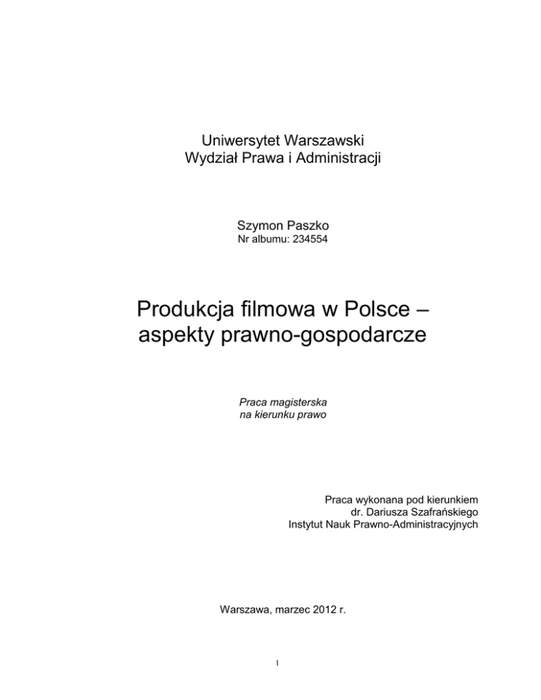 w Polsce, tak od strony jej finansowania jak również od strony jurydycznej. Produkcja