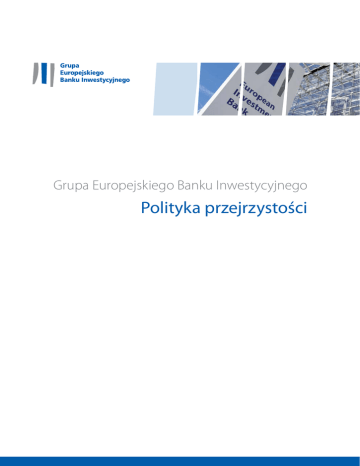 Grupa Europejskiego Banku Inwestycyjnego Polityka przejrzystości Europejski Bank Inwestycyjny Polityka przejrzystości Grupy EBI Polityka przejrzystości Grupy EBI 6 marca 2015 r. 6 marca 2015 r. Strona 1 / 15 Europejski Bank Inwestycyjny Polityka przejrzystości Grupy EBI Spis treści 1. Tło i cel ................................................................................................................................................ 3 2. Główne zasady .................................................................................................................................... 3 Otwartość............................................................................................................................................ 3 Zapewnienie zaufania i ochrona poufnych informacji ........................................................................ 4 Gotowość do słuchania i zaangażowania............................................................................................ 4 3. Ramy instytucjonalne.......................................................................................................................... 4 4. Publikowanie informacji...................................................................................................................... 5 Zasady publikowania informacji ......................................................................................................... 5 Informacje dotyczące projektów ........................................................................................................ 6 Informacje finansowe ......................................................................................................................... 7 5. Ujawnianie informacji ......................................................................................................................... 8 Zasady ujawniania informacji ............................................................................................................. 8 Wyjątki ................................................................................................................................................ 8 Procedury rozpatrywania wniosków o informacje ........................................................................... 10 6. Przepisy dotyczące skarg i odwołań .................................................................................................. 11 System rozpatrywania skarg ............................................................................................................. 11 Europejski Rzecznik Praw Obywatelskich ......................................................................................... 12 Trybunał Sprawiedliwości Unii Europejskiej ..................................................................................... 12 7. Zaangażowanie interesariuszy i konsultacje publiczne..................................................................... 12 Zasady zaangażowania interesariuszy .............................................................................................. 12 Zaangażowanie interesariuszy w projekty ........................................................................................ 13 Konsultacje społeczne ....................................................................................................................... 13 8. Promowanie przejrzystości ............................................................................................................... 14 Inicjatywa na rzecz przejrzystości w przemyśle wydobywczym ....................................................... 14 Międzynarodowa Inicjatywa na rzecz Przejrzystości Pomocy .......................................................... 14 9. Zakres odpowiedzialności ................................................................................................................. 14 6 marca 2015 r. Strona 2 / 15 Europejski Bank Inwestycyjny Polityka przejrzystości Grupy EBI 1. Tło i cel 1.1 Niniejsza polityka przejrzystości („polityka”) określa podejście Grupy EBI do przejrzystości i zaangażowania interesariuszy. 1.2 Grupa EBI („Grupa”) składa się z Europejskiego Banku Inwestycyjnego (EBI) i Europejskiego Funduszu Inwestycyjnego (EFI). Główne zasady niniejszej polityki, określone w rozdziale 2, mają zastosowanie do Grupy jako całości, natomiast dalsze części mają zastosowanie wyłącznie do EBI. EFI ustanowi własne ramy wdrażania, które będą uwzględniać szczególny kontekst działalności i zarządzania EFI. 1.3 Przy stosowaniu niniejszej polityki Grupa EBI uwzględnia inne polityki i zasady Grupy EBI, takie jak polityka zwalczania nadużyć finansowych, polityka zgłaszania nieprawidłowości, system rozpatrywania skarg oraz stosowne kodeksy postępowania mające zastosowanie do pracowników i organów kierowniczych. Niniejsza polityka nie zastępuje tych polityk i zasad, ale należy ją interpretować w powiązaniu z nimi, gdyż wzajemnie się one wzmacniają. W razie konfliktu między konkretnymi zasadami dotyczącymi przejrzystości i ujawniania informacji w innych politykach Grupy EBI i niniejszej polityce przejrzystości, pierwszeństwo mają przepisy tej ostatniej. 1.4 Niniejsza polityka została zatwierdzona przez Radę Dyrektorów EBI 6 marca 2015 r., zgodnie z artykułem 18 regulaminu wewnętrznego Banku i w następstwie procesu konsultacji społecznych. Polityka przejrzystości jest dostępna we wszystkich językach urzędowych Unii Europejskiej, zarówno na stronie internetowej EBI, jak i w wersji papierowej (na żądanie). 2. Główne zasady OTWARTOŚĆ 2.1 Niniejsza polityka kieruje się zasadą otwartości i możliwie największym stopniem przejrzystości polegającym na tym, że informacje na temat działalności operacyjnej i instytucjonalnej Grupy są udostępniane stronom trzecim (społeczeństwu), chyba że podlega to określonemu wyjątkowi („zasada ujaw