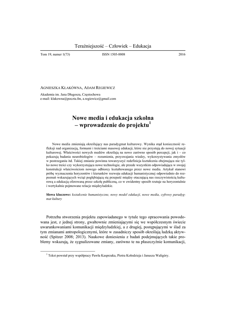 Nowe media i edukacja szkolna – wprowadzenie do projektu