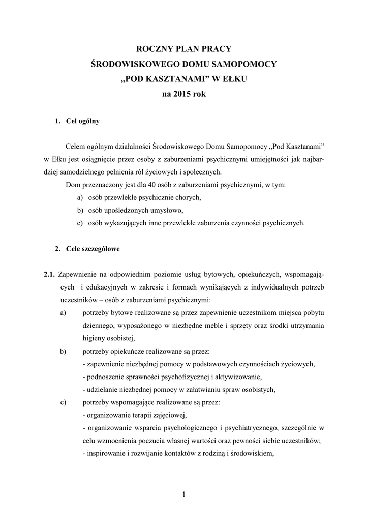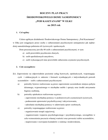 Roczny Plan Pracy - Strona Środowiskowego Domu Samopomocy