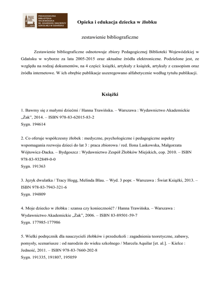 Opieka i edukacja dziecka w żłobku zestawienie bibliograficzne
