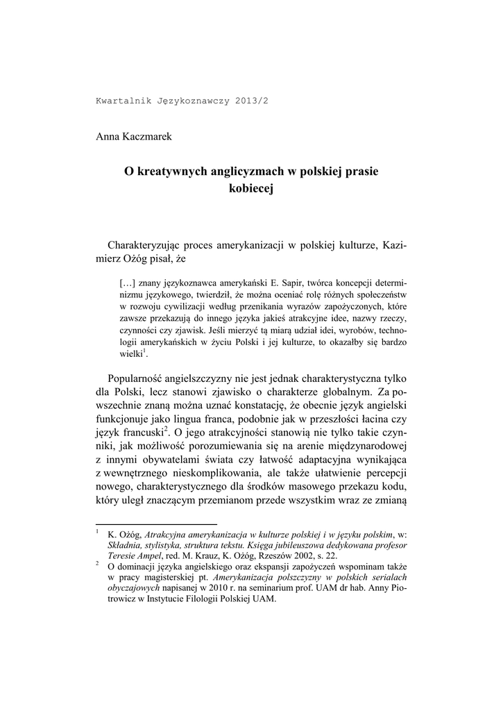 O kreatywnych anglicyzmach w polskiej prasie kobiecej