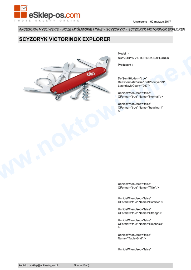 w Utworzono : 02 marzec 2017 AKCESORIA MYŚLIWSKIE > NOŻE MYŚLIWSKIE I INNE > SCYZORYKI > SCYZORYK VICTORINOX EXPLORER SCYZORYK VICTORINOX EXPLORER p . e Model : - SCYZORYK VICTORINOX EXPLORER Producent : - n j y iz DefSemiHidden="true" DefQFormat="false" DefPriority="99" LatentStyleCount="267"> UnhideWhenUsed="false" QFormat="true" Name="Normal" /> w o t k o .n UnhideWhenUsed="false" QFormat="true" Name="heading 1" /> w w UnhideWhenUsed="false" QFormat="true" Name="Title" /> UnhideWhenUsed="false" QFormat="true" Name="Subtitle" /> UnhideWhenUsed="false" QFormat="true" Name="Strong" /> UnhideWhenUsed="false" QFormat="true" Name="Emphasis" /> UnhideWhenUsed="false" Name="Table Grid" /> UnhideWhenUsed="false" kontakt : - [email protected] Strona 1/{nb} w Utworzono : 02 marzec 2017 AKCESORIA MYŚLIWSKIE > NOŻE MYŚLIWSKIE I INNE > SCYZORYKI > SCYZORYK VICTORINOX EXPLORER SCYZORYK VICTORINOX EXPLORER p . e QFormat="true" Name="No Spacing" /> UnhideWhenUsed="false" Name="Light Shading" /> n j y iz UnhideWhenUsed="false" Name="Light List" /> UnhideWhenUsed="false" Name="Light Grid" /> UnhideWhenUsed="false" Name="Medium Shading 1" /> w o t k o .n UnhideWhenUsed="false" Name="Medium Shading 2" /> UnhideWhenUsed="false" Name="Medium List 1" /> UnhideWhenUsed="false" Name="Medium List 2" /> UnhideWhenUsed="false" Name="Medium Grid 1" /> w w UnhideWhenUsed="false" Name="Medium Grid 2" /> UnhideWhenUsed="false" Name="Medium Grid 3" /> UnhideWhenUsed="false" Name="Dark List" /> UnhideWhenUsed="false" Name="Colorful Shading" /> UnhideWhenUsed="false" Name="Colorful List" /> UnhideWhenUsed="false" Name="Colorful Grid" /> UnhideWhenUsed="false" Name="Light Shading Accent 1" /> UnhideWhenUsed="false" Name="Light List Accent 1" /> UnhideWhenUsed="false" Name="Light Grid Accent 1" /> UnhideWhenUsed="false" kontakt : - [email protected] Strona 2/{nb} w Utworzono : 02 marzec 2017 AKCESORIA MYŚLIWSKIE > NOŻE MYŚLIWSKIE I INNE > SCYZORYKI > SCYZORYK VICTORINOX EXPLORER SCYZORYK VICTORINOX EXPLORER p . e Name="Medium Shading 1 Accent 1" /> UnhideWhenUsed="false" Name="Medium Shading 2 Accent 1" /> n j y iz UnhideWhenUsed="false" Name="Medium List 1 Accent 1" /> UnhideWhenUsed="false" QFormat="true" Name="List Paragraph" /> w o t k o .n UnhideWhenUsed="false" QFormat="true" Name="Quote" /> UnhideWhenUsed="false" QFormat="true" Name="Intense Quote" /> UnhideWhenUsed="false" Name="Medium List 2 Accent 1" /> UnhideWhenUsed="false" Name="Medium Grid 1 Accent 1" /> w w UnhideWhenUsed="false" Name="Medium Grid 2 Accent 1" /> UnhideWhenUsed="false" Name="Medium Grid 3 Accent 1" /> UnhideWhenUsed="false" Name="Dark List Accent 1" /> UnhideWhenUsed="false" Name="Colorful Shading Accent 1" /> UnhideWhenUsed="false" Name="Colorful List Accent 1" /> UnhideWhenUsed="false" Name="Colorful Grid Accent 1" /> UnhideWhenUsed="false" Name="Light Shading Accent 2" /> UnhideWhenUsed="false" Name="Light List Accent 2" /> UnhideWhenUsed="false" Name="Light Grid Accent 2" /> kontakt : - [email protected] Strona 3/{nb} w Utworzono : 02 marzec 2017 AKCESORIA MYŚLIWSKIE > NOŻE MYŚLIWSKIE I INNE > SCYZORYKI > SCYZORYK VICTORINOX EXPLORER SCYZORYK VICTORINOX EXPLORER p . e UnhideWhenUsed="false" Name="Medium Shading 1 Accent 2" /> n j y iz UnhideWhenUsed="false" Name="Medium Shading 2 Accent 2" /> UnhideWhenUsed="false" Name="Medium List 1 Accent 2" /> UnhideWhenUsed="false" Name="Medium List 2 Accent 2" /> w o t k o .n UnhideWhenUsed="false" Name="Medium Grid 1 Accent 2" /> UnhideWhenUsed="false" Name="Medium Grid 2 Accent 2" /> UnhideWhenUsed="false" Name="Medium Grid 3 Accent 2" /> UnhideWhenUsed="false" Name="Dark List Accent 2" /> w w UnhideWhenUsed="false" Name="Colorful Shading Accent 2" /> UnhideWhenUsed="false" Name="Colorful List Accent 2" /> UnhideWhenUsed="false" Name="Colorful Grid Accent 2" /> UnhideWhenUsed="false" Name="Light Shading Accent 3" /> UnhideWhenUsed="false" Name="Light List Accent 3" /> UnhideWhenUsed="false" Name="Light Grid Accent 3" /> UnhideWhenUsed="false" Name="Medium Shading 1 Accent 3" /> UnhideWhenUsed="false" Name="Medium Shading 2 Accent 3" /> UnhideWhenUsed="false" kontakt : - [email protected] Strona 4/{nb} w Utworzono : 02 marzec 2017 AKCESORIA MYŚLIWSKIE > NOŻE MYŚLIWSKIE I INNE > SCYZORYKI > SCYZORYK VICTORINOX EXPLORER SCYZORYK VICTORINOX EXPLORER p . e Name="Medium List 1 Accent 3" /> UnhideWhenUsed="false" Name="Medium List 2 Accent 3" /> n j y iz UnhideWhenUsed="false" Name="Medium Grid 1 Accent 3" /> UnhideWhenUsed="false" Name="Medium Grid 2 Accent 3" /> UnhideWhenUsed="false" Name="Medium Grid 3 Accent 3" /> w o t k o .n UnhideWhenUsed="false" Name="Dark List Accent 3" /> UnhideWhenUsed="false" Name="Colorful Shading Accent 3" /> UnhideWhenUsed="false" Name="Colorful List Accent 3" /> UnhideWhenUsed="false" Name="Colorful Grid Accent 3" /> w w UnhideWhenUsed="false" Name="Light Shading Accent 4" /> UnhideWhenUsed="false" Name="Light List Accent 4" /> UnhideWhenUsed="false" Name="Light Grid Accent 4" /> UnhideWhenUsed="false" Name="Medium Shading 1 Accent 4" /> UnhideWhenUsed="false" Name="Medium Shading 2 Accent 4" /> UnhideWhenUsed="false" Name="Medium List 1 Accent 4" /> UnhideWhenUsed="false" Name="Medium List 2 Accent 4" /> UnhideWhenUsed="false" Name="Medium Grid 1 Accent 4" /> UnhideWhenUsed="false" Name="Medium Grid 2 Accent 4" /> kontakt : - [email protected] Strona 5/{nb} w Utworzono : 02 marzec 2017 AKCESORIA MYŚLIWSKIE > NOŻE MYŚLIWSKIE I INNE > SCYZORYKI > SCYZORYK VICTORINOX EXPLORER SCYZORYK VICTORINOX EXPLORER p . e UnhideWhenUsed="false" Name="Medium Grid 3 Accent 4" /> UnhideWhenUsed="false" Name="Dark List Accent 4" /> n j y iz UnhideWhenUsed="false" Name="Colorful Shading Accent 4" /> UnhideWhenUsed="false" Name="Colorful List Accent 4" /> w o t k o .n UnhideWhenUsed="false" Name="Colorful Grid Accent 4" /> UnhideWhenUsed="false" Name="Light Shading Accent 5" /> UnhideWhenUsed="false" Name="Light List Accent 5" /> UnhideWhenUsed="false" Name="Light Grid Ac