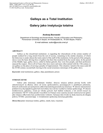 Galleys as a Total Institution Galery jako instytucja totalna