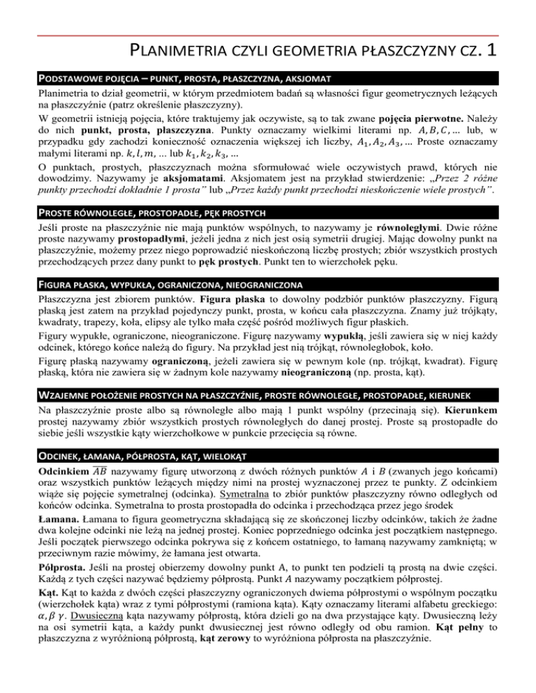 PLANIMETRIA CZYLI GEOMETRIA PŁASZCZYZNY CZ. 1