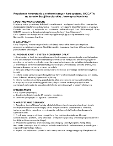 Regulamin korzystania z elektronicznych kart systemu SKIDATA na