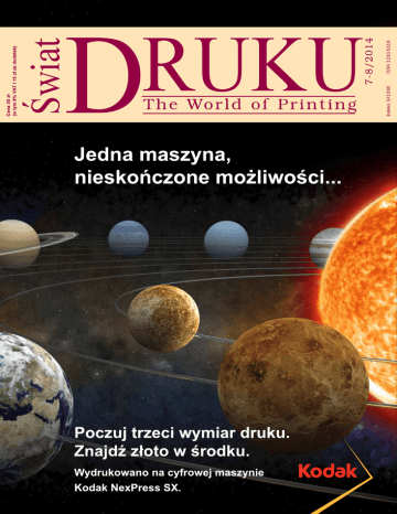 1 ś W I A T D R U K U 7–8/2 0 1 4 Plastics Group Sp. z o. o.O DjestR Eczołowym D A K C J I dystrybutorem płyt, folii, półproduktów z tworzyw sztucznych i aluminium na rynku Europy Środkowo-Wschodniej. Plastics Group Sp. z o. o. - Produkty VISCOM Szanowni Czytelnicy, 1 ul. Kolumba 40 02-288 Warszawa; tel. (22) 575 08 00, 43, 53 fax (22) 575 08 88 W lipcowo-sierpniowym numerze „Świata DRUKU jak zwykle dominuje tematyka związana z drukiem cyfrowym w wiele-mail: [email protected] kim, a także małym formacie, zadrukiem komunikacją wizualną,zastosowanie rozwiązaniami dla rynku reklamy oraz Oferujemy wysokiej klasy tekstyliów, produkty mające www.plastics.pl działem DTP. Wydanie przygotowaliśmy z myślą o wrześniowych imprezach: Festiwalu Marketingu, Druku & Opakowań w wielu sektorach gospodarki. w Warszawie (na którym organizujemy Mini-Akademię Zarządzania Barwą – patrz s. 34), i wystawie Photokina w Kolonii (stąd zauważalna obecność „świata fotografii” w tym wydaniu). Warto na pewno przeczytać relację z tegorocznych targów Fespa Digital, otwierającą część główną numeru – przedstawiliśmy w niej bardzo wiele ciekawych rozwiązań, Polecamy materiały a i tak nie wyczerpaliśmy tematu!wykorzystywane w reklamie, grafice W pierwszym zdaniu tego wprowadzenia użyłam sformułowania „jak zwykle” – ale… nie było to precyzyjne. Tematyka i druku cyfrowym oraz materiały do opakowań. przewodnia numeru 7/8 jest zgodna z naszą tradycją, i jak zwykle dołączyliśmy do niego dodatek – ale on sam zwyczajny nie jest, o czym świadczy już jego tytuł: „Magiczne wrota do świata kreacji”. Dodatek jest o tyle szczególny i „magiczny”, że będąc „kreatywną” teczką jednocześnie stanowi jej zawartość – wraz z numerem 7/8. W naszej teczce – ozdobionej rysunkiem „wrót”, znajdują się więc: próbki materiałów i przykłady produktów dostarczone przez firmy, które współtworzą z nami ten projekt, oraz dwie publikacje: „Świat DRUKU” i dodatek w postaci osobnego magazynu pt. „Magiczne wrota do świata kreacji”. W dodatku, którego layout jest nieco bardziej „kreatywny” niż nobliwy, uporządkowany „pod linijkę” layout „Świata DRUKU”, piszemy o projektowaniu, grafice i grafikach, materiałach przydatnych do tworzenia „kreatywnych” produktów – druków, opakowań, pudełek, gadżetów i tekstyliów z nadrukami, o drukowaniu, uszlachetnianiu, ozdabianiu, i o usługach w tym zakresie. Zamieszczamy dwie rozmowy z artystami – z twórcą identyfikacji wizualnej i twórcą komiksu, kilka artykułów i garść tematycznych „newsów”, które, mamy nadzieję, Państwa zainspirują, i jak już pisaliśmy, pomogą Państwu zrealizować własne pomysły – może i takie, które dotąd wydawały się utopią... Zapraszam do lektury naszych publikacji, także podczas urlopu! POLIGRAFIA duży wybór materiałów rolowych do grafiki i druku cyfrowego Joanna Więckowska oraz materiały arkuszowe PET, Wydawca: Polski Drukarz sp. z o.o. Adres: ul. Obywatelska 115, 94-104 Łódź tel. 42 687 12 92, 42 688 79 49, fax: 42 687 12 99 [email protected] www.swiatdruku.eu PCV, PP, HIPS dedykowane Wspólnie tworzymy do druku offset, sito Dyrektor wydawnictwa: Jolanta Ziemniak-Ronke Redakcja: Joanna Więckowska – z-ca redaktora naczelnego Karolina Drożdż – redaktor Justyna Sarna – współpraca [email protected] Dział marketingu i sprzedaży: Rafał Kłąb – marketing i reklama Jarosław Gaweł – reklama i prenumerata [email protected] [email protected] [email protected] Księgowość: Elżbieta Porczyńska Jolanta Ziemniak-Ronke Elżbieta Porczyńska Joanna Więckowska Karolina Drożdż Justyna Sarna Jarosław Gaweł Rafał Kłąb Redakcja nie odpowiada za treść ogłoszeń i artykułów promocyjnych oraz nie zwraca materiałów niezamówionych. Zastrzegamy sobie prawo skracania i adiustacji tekstów oraz zmiany ich tytułów. Przedrukowywanie materiałów lub ich części – tylko za pisemną zgodą redakcji. Materiały do artykułów promocyjnych powinny być dostarczone w wersji cyfrowej w postaci plików DOC lub RTF (dane teleadresowe i tekst) oraz JPEG lub TIFF (logo i zdjęcia). Artykuły promocyjne przygotowywane do publikacji są przed oddaniem ich do druku przesyłane zamawiającemu do akceptacji. Forma graficzna artykułów promocyjnych podlega zasadom jednolitym dla wszystkich materiałów zamieszczanych w czasopiśmie. Jedna strona artykułu to około 3000 znaków (bez grafiki). szeroka gama Folii dla opakowań termoformowanych, Skład i łamanie: Studio Graficzne Agaty Sobiepańskiej sztancowanych, wykrawanych Druk wnętrza i oprawa: Pabianickie Zakłady Graficzne SA ul. Piotra Skargi 40/42, 95-200 Pabianice tel. 42 215 44 18, fax 42 215 25 70 Członek Polskiej Izby Druku Członek Wspierający Stowarzyszenia Poligrafów Pomorskich Sponsor Założyciel Fundacji Rozwoju Kadr Poligraficznych Członek Polskiego Stowarzyszenia Sitodruku i Druku Cyfrowego Okładkę wydrukowała firma Kodak Członek Polskiej Izby Fleksografów ul. Kolumba 40 02-288 Warszawa Cena: 15 zł bez dodatku (w tym 8% VAT) Partner programu Solidni w Biznesie Centrala - Warszawa na maszynie Kodak NexPress SX tel. (22) 575 08 00, 43, 53 zamawiania fax (22) 575 08 88 Informacje o sposobie prenumeraty znajdują się na ostatniej stronie czasopisma. e-mail:i reklamy [email protected] www.plastics.pl Partner Klastra Poligraficzno-Reklamowego w Lesznie 2 S P I S Indeks reklam 3M 38, 59 Agfa 35 Bretar 38 Canon 47 Color Group 55 ColorStore 45, 51 Dyskret 38 KML Solutions 41 Kodak *I, wrzutka Mimaki *IV Multifol 31 MTP wrzutka Oki *II Plastics Group *III Pabianickie Zakłady Graficzne 71 Plotserwis 39 PolKos 37 Sharp 36 TeBa 29 Contents Spis treści 3 News 19 Fespa Digital 2014 30 10th Anniversary of Mimaki Europe Interview with Mike Horsten, Marketing Manager Mimaki Europe 31 Enhancement of Large Format Prints Jakub Kuzioła 3 