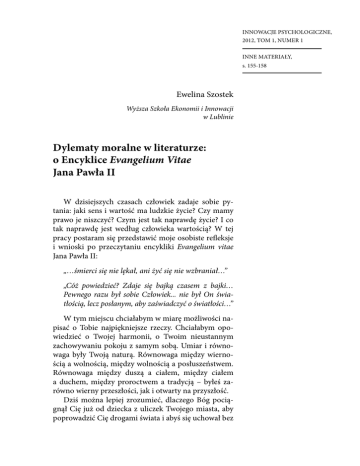 Dylematy moralne w literaturze: o Encyklice Evangelium Vitae Jana