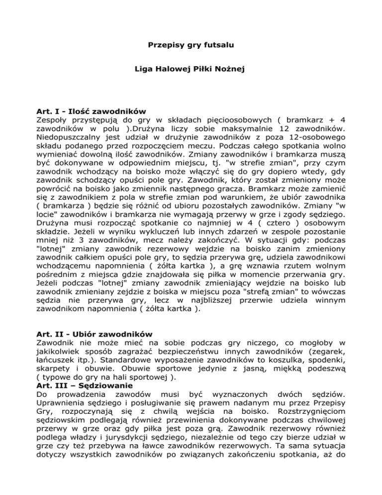 Przepisy gry futsalu Liga Halowej Piłki Nożnej Art. I
