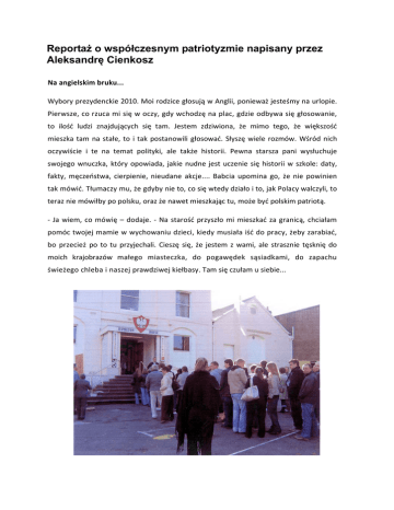 Reportaż o współczesnym patriotyzmie napisany przez Aleksandrę