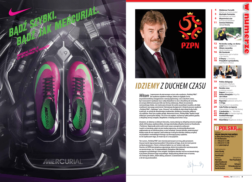 w numerze 4Waldemar Fornalik 5 6 11 Wiemy, co musimy zrobić Mychajło Fomienko Nie obawiam się Polski Wspomnień czar Emmanuel Olisadebe Zamiast felietonu Janusz Basałaj 12Na boisku czołg, a w domu anioł Marcin Wasilewski 15Okiem rzecznika Jakub Kwiatkowski Ebi Smolarek Najładniejszy gol w kadrze z San Marino 17U Deyny i u Smolarka 18 Prezydent u prezydenta, czyli Platini w Polsce 16 IDZIEMY Z DUCHEM CZASU Witam i zapraszam do pierwszego w tym roku wydania „Polskiej Piłki”. Do wydania zupełnie nowego, także ze względu na to, że postanowiliśmy zrezygnować z wersji papierowej, a iść z duchem czasu, być nowocześni i pokazać się w całej okazałości w sieci. Doszliśmy do wniosku, że wersja elektroniczna jest dla nas formą ciekawszą. Może nie zostawia namacalnego śladu, nie można jej schować do szafy czy położyć na półce, ale daje możliwość szerszego zaistnienia i łatwiejszej dostępności. Dotychczasowe wydania „Polskiej Piłki”, „Sędziego” oraz „Trenera”, nie trafiały do zbyt dużej liczby ludzi, a jeśli już, to raczej do określonego środowiska: działaczy, trenerów, piłkarzy czy sędziów. Poza tym szybko ginęły. Natomiast teraz „Polską Piłkę” będzie mógł zobaczyć i przeczytać każdy. I nic za to nie zapłaci, wystarczy tylko pobrać gazetę z oficjalnej strony związku. Bezpłatnie. O każdy porze dnia i nocy. Uważam, że idziemy w dobrym kierunku, mamy dzisiaj na oficjalnej stronie związku około 250 tysięcy użytkowników, do tego dochodzą oficjalne konta na Facebooku i Twitterze. Naprawdę wiele osób może nasze czasopismo zobaczyć. I wejść w interakcję, gdyż nie jest żadną tajemnicą, że dzisiaj błyskawicznie odpowiada się na zamieszczone w sieci artykuły. I proszę bardzo, polemizujmy! Każdy może do nas napisać i jeśli zobaczę w skrzynce bardzo ciekawy artykuł, na przykład o metodologii treningu czy koncepcji pracy sędziów, to nie wykluczam tego, że może się on u nas pojawić. Ten numer „Polskiej Piłki” jest również pierwszym ze mną, jako prezesem. Czy już się do tego przyzwyczaiłem? Zacznijmy od tego, że ja nie mam parcia na bycie prezesem. Z tymi, z którymi byłem na „ty”, jestem cały czas. Pewnie, że PZPN jest potężną organizacją, która ma znakomite rozmieszczenie na terenie kraju, ma 16 wojewódzkich Związków Piłki Nożnej, następnie są podokręgi i inne związki. Istniejemy bardzo mocno na terenie kraju. A ja jestem prezesem tego wszystkiego. Kiedy patrzę jednak rano w lustrze, nie mówię do siebie „Dzień dobry, prezesie”, a zastanawiam się, o ile lat się postarzałem. Logo full color gradient on white background CMYK 19Polska delegacja przywiozła z Madrytu współpracę z Hiszpanią 20 Rendez-vous w zielonej scenerii 22Raport Sawickiego 23Kadra olimpijska Misja Rio 24 Jan Urban Kontrakt po mistrzostwie 26 Reportaż Sędziowie od kuchni 28 I i II liga Nawet paniom się podoba 29 Cała tapecie LogoPolska full colorna gradient on white background Wojewódzkie Związki Piłki Nożnej 41 Z podwórka na… Wembley 43Wokół piłki Kto będzie legendą 44 Football Manager Czy to jeszcze gra 46 Klub Kibica Wyjątkowe atrakcje Logo full color gradient on white background CMYK CMYK C0/M50/Y100/K0 C0/M8/Y63/K0 C0/M30/Y100/K0 50 50 C0/M8/Y63/K0 C0 - M100 - Y100 - K0 CMYK C0/M50/Y100/K0 location 53.57 49.71 66.67 0 91.81 C0/M50/Y100/K22 C0/M30/Y100/K0 CMYK Wydawca: Polski Związek Piłki Nożnej ul. Bitwy Warszawskiej 1920 r. 7 02-366 Warszawa tel. +48 (22) 55 12 300 fax +48 (22) 55 12 240 e-mail: [email protected] C0/M54/Y72/K0 C0/M30/Y100/K0 C0/M100/Y100/K0 C0/M88/Y100/K33 C0/M100/Y100/K34 location 53.57 75.44 91.81 C0/M88/Y100/K33 C0/M30/Y100/K0 location 30.84 0 65.85 31.82 62.58 C0/M100/Y100/K0 C0/M54/Y72/K0 86.55 100 location location C0/M100/Y100/K0 C0/M100/Y100/K34 Zespół wydawniczy Janusz Basałaj (przewodniczący) Paweł Drażba (sekretarz) Skład graficzny Piotr Przychodzeń Piotr Gołos Jakub Kwiatkowski Foto Cyfrasport Łukasz Wiśniowski Piotr Tenczyński W.Sierakowski@net Kamila Bundyra Archiwum Logo full color gradient on white background CMYK C0/M50/Y100/K22 location CMYK CMYK C0/M50/Y100/K0 C0/M8/Y63/K0 C0/M30/Y100/K0 50 50 49.71 66.67 0 C0/M8/Y63/K0 C0 - M100 - Y100 - K0 CMYK C0/M50/Y100/K0 location 53.57 91.81 C0/M50/Y100/K22 50 Nr 1 (01) 2013 | 3 C0/M8/Y63/K0 C0 - M100 - Y100 - K0 CMYK CMYK C0/M30/Y100/K0 C0/M50/Y100/K0 location 53.57 91.81 location C0/M50/Y100/K22 C0/M30/Y100/K0 CMYK C0/M30/Y100/K0 C0/M54/Y72/K0 C0/M88/Y100/K33 50 49.71 66.67 0 location C0/M50/Y100/K22 C0/M30/Y100/K0 C0/M88/Y100/K33 C0/M100/Y100/K0 C0/M100/Y100/K34 53.57 location 30.84 65.85 31.82 location 53.57 location 30.84 65.85 31.82 location Wiemy, co musimy zrobić Rozgrywa już Pan w głowie mecz z Ukrainą? Zacząłem myśleć o tym meczu, kiedy skończyło się spotkanie z Anglią. Nie jest tak, że później zapadliśmy w zimowy sen, a wszystko to, co robiliśmy przez cały ten czas, było wykonywane z myślą właśnie o meczu z Ukrainą. Może nie rozgrywam go jeszcze w sobie, ale mocno myślę o tym spotkaniu, kiedy zastanawiam się nad powołaniami zawodników. Przyjdzie natomiast odpowiedni moment na analizę i dokładne przygotowanie się do tego meczu. Pytałem o konkretny mecz, mając na myśli starcie z września 2000 roku. Wygraliśmy wówczas w Kijowie 3:1, a na boisku szalał Emmanuel Olisadebe, co przypominamy rozmową z zawodnikiem w tym numerze „Polskiej Piłki”. Pamięta Pan, co robił 13 lat temu? Oczywiście, że pamiętam – rozpoczynałem wówczas pracę jako drugi trener w Wiśle Kraków. Z trenerem Orestem Lenczykiem. Bardziej od tamtego spotkania z Ukrainą zapamiętałem jednak ostatnie Euro. Byłem w Kijowie na meczu finałowym. Miasto piękne, a finał wspaniały! Nauczył się już Pan „żyć na skróty”? W normalnych warunkach nad pewnymi zachowaniami, pewnymi sposobami gry czy ustawienia zespołu, pracuje się mie