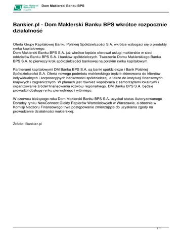 Bankier.pl - Dom Maklerski Banku BPS wkrótce rozpocznie