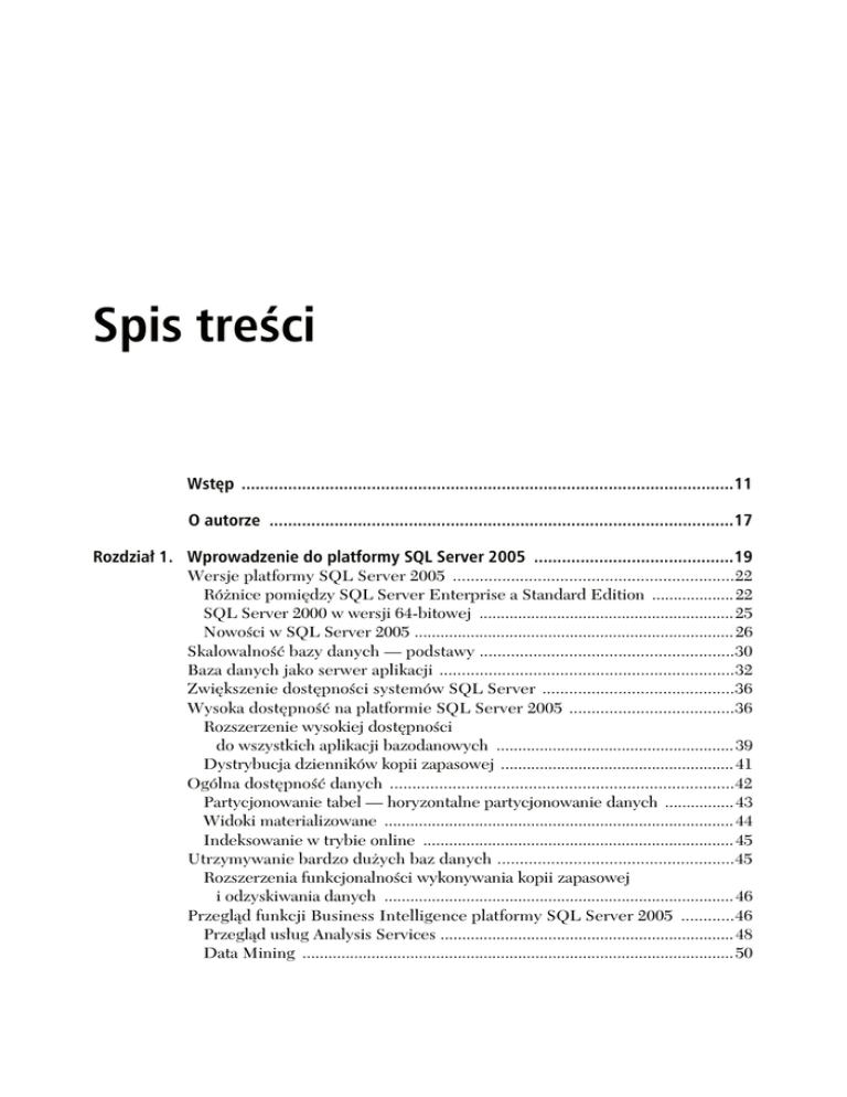 Spis treści Wstęp ..........................................................................................................11 O autorze ....................................................................................................17 Rozdział 1. Wprowadzenie do platformy SQL Server 2005 ...........................................19 Wersje platformy SQL Server 2005 ...............................................................22 Różnice pomiędzy SQL Server Enterprise a Standard Edition ................... 22 SQL Server 2000 w wersji 64-bitowej ........................................................... 25 Nowości w SQL Server 2005 .......................................................................... 26 Skalowalność bazy danych — podstawy .........................................................30 Baza danych jako serwer aplikacji ..................................................................32 Zwiększenie dostępności systemów SQL Server ...........................................36 Wysoka dostępność na platformie SQL Server 2005 .....................................36 Rozszerzenie wysokiej dostępności do wszystkich aplikacji bazodanowych ....................................................... 39 Dystrybucja dzienników kopii zapasowej ...................................................... 41 Ogólna dostępność danych .............................................................................42 Partycjonowanie tabel — horyzontalne partycjonowanie danych ................ 43 Widoki materializowane ................................................................................. 44 Indeksowanie w trybie online ........................................................................ 45 Utrzymywanie bardzo dużych baz danych .....................................................45 Rozszerzenia funkcjonalności wykonywania kopii zapasowej i odzyskiwania danych ................................................................................. 46 Przegląd funkcji Business Intelligence platformy SQL Server 2005 ............46 Przegląd usług Analysis Services .................................................................... 48 Data Mining .................................................................................................... 50 6 SQL Server 2005. Wyciśnij wszystko Funkcje relacyjne hurtowni danych ............................................................... 51 Ekstrakcja, transformacja i ładowanie danych w SQL Server 2005 ............. 52 Reporting Services .......................................................................................... 53 Najbardziej wysublimowane funkcje SQL Server 2005 ................................54 Podsumowanie ................................................................................................56 Rozdział 2. Co wszyscy powinni wiedzieć o bezpieczeństwie .......................................57 Podstawowe funkcje zabezpieczające silnik SQL Server ..............................60 Wymuszanie polityki haseł ............................................................................. 61 Zasada najmniejszych przywilejów ................................................................ 62 Kontekst wykonawczy ..................................................................................... 67 Poświadczenia ................................................................................................. 67 Certyfikaty i Secure Socket Layer .................................................................. 69 Szyfrowanie ..................................................................................................... 71 Koncepcja bezpieczeństwa punktu końcowego .............................................77 Bezpieczeństwo usług sieciowych .................................................................. 77 Bezpieczeństwo usług Notification Services ................................................. 78 Bezpieczeństwo mirroringu bazy danych ...................................................... 78 Bezpieczeństwo usługi SQL Service Broker ................................................. 79 Bezpieczeństwo kodu zarządzanego ...............................................................80 Bezpieczeństwo usługi Analysis Services ......................................................81 Bezpieczeństwo na poziomie kostki ............................................................... 84 Bezpieczeństwo na poziomie wymiaru .......................................................... 84 Bezpieczeństwo na poziomie komórki ........................................................... 84 Bezpieczeństwo struktury i modelu drążenia danych oraz źródła danych ... 85 Dostęp Analysis Services do procedur składowanych CLR .......................... 85 Funkcje bezpieczeństwa usługi SQL Server Integration Services ...............86 Bezpieczeństwo na poziomie pakietu ............................................................ 86 Role bazy danych w usłudze SSIS ................................................................. 87 Zabezpieczanie środowiska operacyjnego ..................................................... 87 Podpisywanie pakietów certyfikatami ............................................................ 88 Szyfrowanie pakietów SSIS ............................................................................ 88 Bezpieczeństwo usługi Reporting Services ................................................... 89 Zabezpieczanie serwera ..................................................................................90 Usługa SQL Browser Service ......................................................................... 91 SQL Server Configuration Manager .............................................................. 92 Narzędzie SQL Server Surface Area Configuration ...................................... 93 Podsumowanie ..................................................