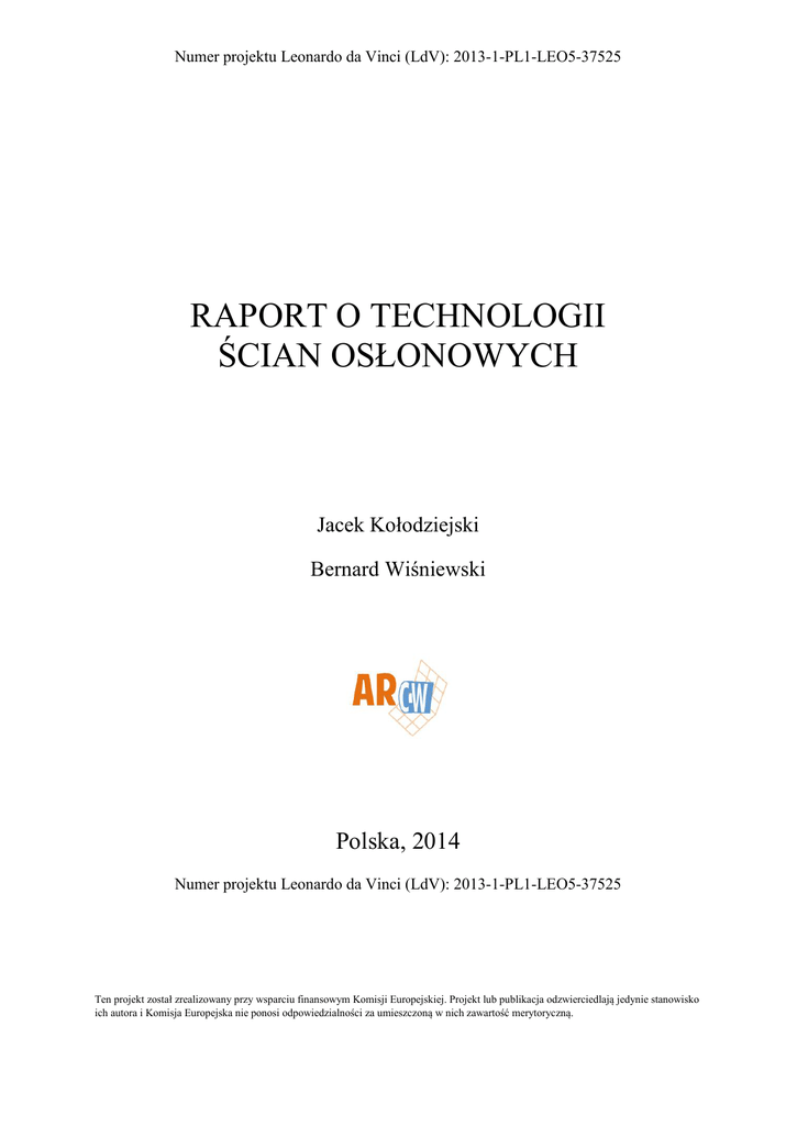 RAPORT O TECHNOLOGII ŚCIAN OSŁONOWYCH