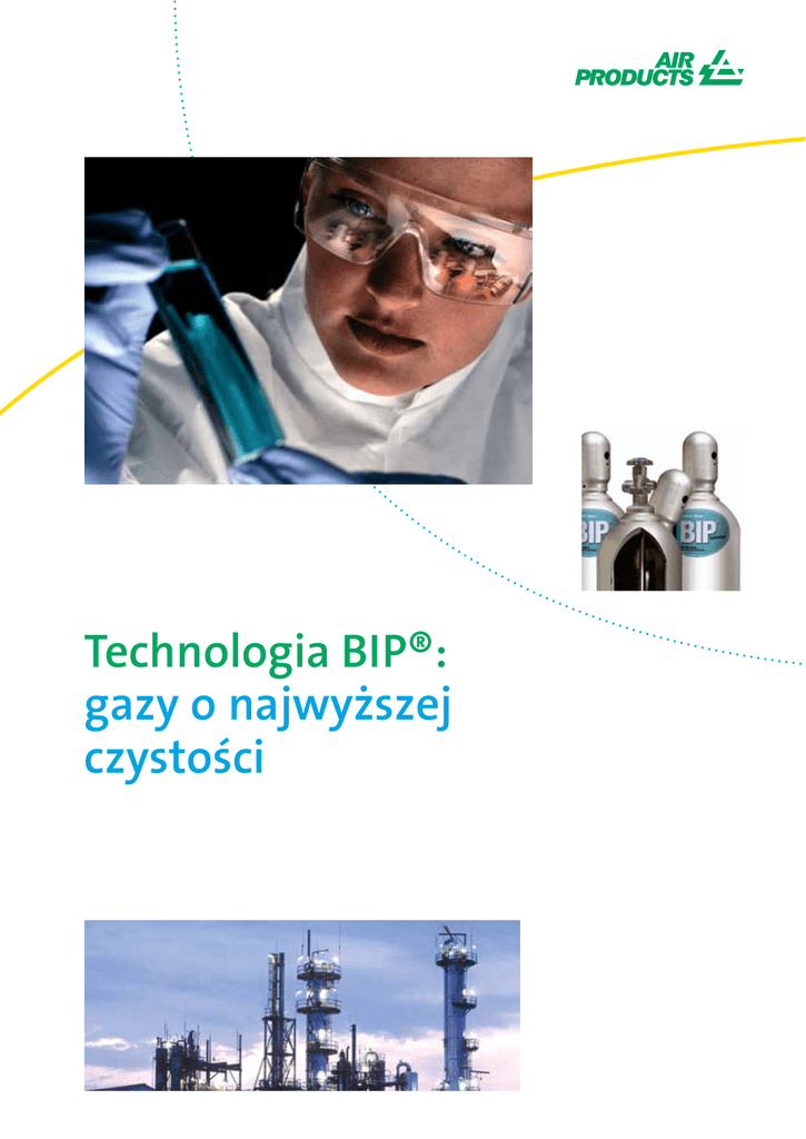 Technologia BIP®: gazy o najwyższej czystości Gazy BIP® do spawania „Radykalnie poprawiliśmy wydajność naszych komór rękawicowych, przedłużając cykl życia katalizatora oraz skracając czas przestojów na regenerację. Naszym klientom polecamy wyłącznie technologię butli BIP® oraz związane z nią bardzo niskie poziomy H2O oraz O2”. Gazy BIP® do komór rękawicowych Arend Kooi. Dyrektor sprzedaży w firmie MBRAUN Glove Boxes, BFI OPTILAS B.V., Holandia Minimalne zanieczyszczenie gwarantuje maksymalny spokój Gazy BIP® do produkcji płyt CD/DVD Na rynku konkurencyjnym przełom BIP®: gazy Experis® przedsiębiorstwa znajdują się pod zawierające poniżej 10ppb tlenu i mniej ciągłą presją, by zwiększać wydajność, niż 20ppb wilgotności w połączeniu optymalizować procesy produkcji z technologią BIP® oferują najniższy oraz poprawiać jakość, jednocześnie poziom zanieczyszczeń wśród gazów minimalizując zanieczyszczenia i koszty. dostępnych na rynku. Technologia BIP® Ustawodawstwo oraz silna konkurencja stała się standardem analitycznym dla doprowadziły do zwiększenia popytu wszelkich zastosowań wymagających na coraz dokładniejsze, rzetelne gazów o wysokiej czystości ze stałym analizy szerokiego spektrum złożonych niskim poziomem zanieczyszczeń: związków chemicznych. chromatografii gazowej, napełniania Pomyśl! Korzystanie z gazów o niższym zbiorników gazem obojętnym, zanieczyszczeniu już na starcie daje spawania precyzyjnego i wielu innych przewagę. Wykorzystaj technologiczny procesów. Gazy BIP® do zastosowań analitycznych Technologia BIP® dla zaawansowanych technicznie zastosowań Specjalistyczne zastosowania analityczne i przemysłowe wymagają zapewnienia czystości gazów w miejscu ich aplikacji. Gazy BIP® gwarantują najwyższe poziomy czystości. Ultraniskie poziomy zanieczyszczeń zapewniają dokładność wyników i spokój umysłu, dzięki czemu można się skoncentrować na prowadzeniu działalności. • Czystość • Dokładność • Stabilność • Zaufanie „W naszej branży nie możemy sobie pozwolić na jakiekolwiek przestoje w produkcji. Dzięki technologii BIP® mamy teraz gwarancję powtarzalności produktu, od pierwszej do ostatniej cząsteczki gazu”. Willem van Wijk, Dyrektor produkcji w Alcontrol Laboratories BV, Holandia. • Powtarzalność • Wygoda • Oszczędność Technologia BIP® oznacza niezawodne analizy w chromatografii gazowej Ponieważ każda z butli wyposażonych w technologię BIP® zawiera poniżej 10 ppb tlenu i 20 ppb wilgoci, oferuje analitykom zajmującym się chromatografią gazową dokładniejszy poziom wyjściowy, lepszą separację pików, niższe progi detekcji oraz większą czułość. A wszystko to przy wydłużonym cyklu życia kolumn i czujników oraz minimalnych wymogach konserwacyjnych. Gaz BIP® jest gazem niezawodnym. • Lepsze wyniki analityczne • Wydajność Gazy BIP® – oszczędności kosztów Wraz ze spadkiem ciśnienia w butli stężenie wody rośnie w przypadku standardowych gazów, lecz pozostaje na tym samym poziomie w przypadku gazów BIP®. Dzięki temu ilość użytecznego gazu w butli z technologią BIP® jest większa, co przekłada się na oszczędności kosztów. H2 O (PPB) 10,000 Opróżnianie butli Gazy standardowe 1,000 100 10 Gazy BIP® – wydajność w GC-FID 1200 1180 Zanieczyszczenia uwalniają się ze ścianki butli i przenikają do strumienia gazu 1160 1140 1120 Linia bazowa FID z N2 bez technologii BIP® jako gazem nośnym 1100 Gazy BIP® 200150 100 50 0 Ciśnienie (barg) 1080 Linia bazowa FID z N2 z technologią BIP® jako gazem nośnym Dane od prof. Larry’ego Taylora, Virginia Tech, 2000 1060 246810 12 14 16 18 min. Szukasz czystości, my ją zapewniamy Technologia oczyszczania BIP®, opatentowana i opracowana przez Air Products, umożliwia stosowanie argonu, azotu, wodoru oraz helu do 300 razy czystszych niż zwykłe gazy w butlach. Gaz Klasa czystości Hel Gazy Experis® z technologią BIP® dostępne są w 3 klasach czystości, z których każda zawiera poniżej 10ppb tlenu i mniej niż 20ppb wilgoci (w przypadku wodoru do 100 ppb tlenu). Azot BIP BIP ECD BIP Plus BIP BIP ECD BIP Plus O2 < 10 ppb < 10 ppb < 10 ppb < 10 ppb < 10 ppb < 10 ppb H2O <20 ppb < 20 ppb < 20 ppb < 20 ppb <20 ppb THC* < 100 ppb < 100 ppb < 50 ppb CO+CO2 < 0.5 ppm < 0.5 ppm < 50 ppb WodórArgon BIP BIP Plus BIP BIP Plus < 100 ppb < 100 ppb < 10 ppb < 10 ppb <20 ppb < 20 ppb < 20 ppb < 20 ppb < 20 ppb < 100 ppb < 100 ppb < 50 ppb < 10 ppb < 10 ppb < 100 ppb < 50 ppb < 0.5 ppm < 0.5 ppm < 50 ppb < 0.5 ppm < 50 ppb < 100 ppb < 50 ppb H2 – – < 100 ppb < 1 ppm < 1 ppm < 50 ppb – – – – CFC** – < 1 ppb – – < 1 ppb – – – – – < 1 ppm < 1 ppm < 100 ppb – – – < 2 ppm < 0.2 ppm < 1 ppm < 0.3 ppm N2 Certyfikat Partia PartiaIndywidualnyPartia PartiaIndywidualnyPartiaIndywidualnyPartiaIndywidualny analizy gazu gazugazu gazugazugazu * THC = CH4 ** CFC = halocarbons „Nawet najmniejsze zanieczyszczenia mogłyby wpłynąć na nasze pomiary izotopów lub uszkodzenie sprzętu. Technologia BIP® umożliwiła nam zbilansowanie naszych wymagań technicznych z ograniczeniami kosztów”. Cyril GIRARDIN, Inżynier, INRA, Francja Rozmiary butli Wszystkie Gazy Experis® z technologią BIP® są dostępne w butlach 50-litrowych pod ciśnieniem 200 bar. Dodatkowo Argon BIP® jest dostępny w wiązkach 12-butlowych. Czysty geniusz Opatentowany system technologii BIP® jest niezależnym zamkniętym systemem oczyszczania, w skład którego wchodzą specjalnie zaprojektowany zawór oraz warstwa oczyszczająca. System BIP® oczyszcza gaz pod wysokim ciśnieniem, aby osiągnąć niski poziom zanieczyszczeń bezpośrednio przed pobraniem gazu z butli. • Gwarantowany najniższy poziom zanieczyszczeń • < 10 ppb O2 oraz < 20 ppb H2O • Bez kłopotów i kosztów związanych z zewnętrznym oczyszczaniem „Przejście na technologię butli BIP®
