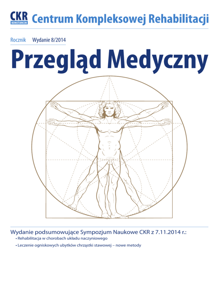 Rocznik Wydanie 8/2014 Przegląd Medyczny Wydanie podsumowujące Sympozjum Naukowe CKR z 7.11.2014 r.: •Rehabilitacja w chorobach układu naczyniowego •Leczenie ogniskowych ubytków chrząstki stawowej – nowe metody W Centrum Kompleksowej Rehabilitacji otoczymy Państwa kompleksową i profesjonalną opieką oraz zapewnimy konieczną diagnostykę. Specjalizujemy się w rehabilitacji narządu ruchu (np.: kolana, biodra), rehabilitacji kręgosłupa, rehabilitacji neurologicznej oraz w operacjach ortopedycznych i chirurgii kręgosłupa. Diagnostyka Zapraszamy do naszych placówek w Konstancinie-Jeziornie, Warszawie i we Wrocławiu. Usługi medyczne świadczymy zarówno w ramach NFZ, jak i odpłatnej opieki medycznej. Podnosimy jakość Twojego życia! 22 703 08 88 Informacja dla Pacjentów zainteresowanych odpłatnymi świadczeniami medycznymi Rehabilitacja Operacje www.ckr.pl Centrum Kompleksowej Rehabilitacji Zarząd Centrum Kompleksowej Rehabilitacji •Mgr Jerzy Karwowski – Prezes Zarządu •Dr n. med. Leszek Krzyżosiak – V-ce Prezes Zarządu Przegląd Medyczny Spis treści ds. Leczniczo-Rehabilitacyjnych Rada Naukowo-Konsultacyjna Centrum Kompleksowej Rehabilitacji •Prof. zw. dr hab. n. med. Jan Haftek -- Doktor Honoris Causa Wojskowej Akademii Medycznej w Łodzi -- Honorowy Członek Polskiego Towarzystwa Neurochirurgów -- Honorowy Członek Polskiego Towarzystwa Rehabilitacji -- Członek Komitetu Rehabilitacji, Kultury Fizycznej i Integracji Społecznej Polskiej Akademii Nauk •Prof. zw. dr hab. n. med. Walerian Staszkiewicz -- Kierownik Kliniki Chirurgii Naczyniowej i Angiologii Centrum Medycznego Kształcenia Podyplomowego w Warszawie •Prof. dr hab. n. med. Jarosław Deszczyński -- Kierownik Kliniki Ortopedii i Rehabilitacji II Wydziału Lekarskiego Akademii Medycznej Wojewódzkiego Szpitala Bródnowskiego w Warszawie -- Wojewódzki Konsultant ds. Ortopedii i Traumatologii Narządu Ruchu wydanie 8/2014 Wstęp . . . . . . . . . . . . . . . . . . . . . . . . . . . . . . . . . . . . . . . . . . . . . . . . . . . . . . . . . . . . . . . . . . . . . . . . . . . . . . . . . . . . . . . . . . . . . . . . . 5 Jerzy Karwowski Objawy kliniczne, diagnostyka i metody terapii najczęstszych chorób tętnic . . . . . . . . . . . . . . . . . . . . . . . . . . . . . . . . . . . . . . . . . . . . . . . . . . . . . . . . . . . . . . . . . . . 6 prof. zw. dr hab. n. med. Walerian Staszkiewicz Rozpoznanie różnicowe chorób naczyniowych i chorób narządu ruchu . . . . . . . . . 8 dr Aleksandra Kaniak Współczesne możliwości rehabilitacji w chorobach układu naczyniowego . . . . . . . . . . . . . . . . . . . . . . . . . . . . . . . . . . . . . . . . . . . . . . . . . . . . . . 11 mgr Urszula Lach, mgr Justyna Żyłka Implant na miarę - innowacje w planowaniu przedoperacyjnym . . . . . . . . . . . . . . . 14 lek. med. Robert Jopowicz1,3 lek. med. J. Michał Deszczyński1,2,3 prof. dr hab. n. med. Jarosław Deszczyński1,2,3 Rehabilitacja po zabiegach operacyjnych z użyciem małych implantów . . . . . 16 mgr Joanna Jaczewska Podsumowanie . . . . . . . . . . . . . . . . . . . . . . . . . . . . . . . . . . . . . . . . . . . . . . . . . . . . . . . . . . . . . . . . . . . . . . . . . . . . . . . . . . 19 dr n. med. Leszek Krzyżosiak •Dr n. med. Marek Krasuski -- Kierownik Kliniki Rehabilitacji Warszawskiego Uniwersytetu Medycznego •Prof. zw. dr hab. Marek Woźniewski -- Kierownik Katedry Fizjoterapii i Terapii Zajęciowej w Medycynie Zachowawczej i Zabiegowej AWF we Wrocławiu -- Przewodniczący Komitetu Rehabilitacji, Kultury Fizycznej i Integracji Społecznej Polskiej Akademii Nauk Przegląd Medyczny wydanie 8/2014 3 Leczenie ogniskowych ubytków Centrum Kompleksowej Rehabilitacji chrząstki stawowej – nowe metody Patron naukowy: Patron honorowy: Sponsor złoty: Partner: Sympozjum realizowane przy wsparciu: Sponsor srebrny: Sponsor brązowy: Patronat medialny: Przegląd Medyczny wydanie 8/2014 4 Centrum Kompleksowej Rehabilitacji Wstęp Jerzy Karwowski Prezes Zarządu Centrum Kompleksowej Rehabilitacji Sp. z o.o. Szanowni Państwo! Centrum Kompleksowej Rehabilitacji dużą wagę przywiązuje do organizacji sympozjum, wybierając, przy wsparciu Rady Naukowej, tematykę najbardziej nam bliską – związaną z naszą działalnością. Chciałbym podkreślić, iż tegoroczna tematyka: „Rehabilitacja w chorobach układu naczyniowego” oraz „Leczenie ogniskowych ubytków chrząstki stawowej – nowe metody”, pokazuje jak szerokim i kompleksowym zagadnieniem jest rehabilitacja oraz jakie możliwości rozwoju stoją przed tą dziedziną medycyny i przed naszym ośrodkiem. Sympozjum Naukowe CKR 2014 odbyło się w roku jubileuszu 25-lecia wolności Rzeczpospolitej Polski – nasze Centrum wpisało się w ten jubileusz. Jestem przekonany, że wykorzystaliśmy daną nam szansę już we wrześniu 1989 roku. Będąc ówcześnie Ośrodkiem Kształcenia Inwalidów zmieniliśmy kierunki kształcenia, wprowadzając jako pierwsi w Polsce zawody informatyczne. Badania losów absolwentów potwierdziły skuteczność prowadzonej przez nas kompleksowej Rehabilitacji. Rok 2000 to początek spółki z udziałem pracowników i dynamiczny rozwój działalności rehabilitacyjnej. W kolejnych latach powstawały nowe zakresy usług i stopniowo rosła liczba Pacjentów. Dzisiaj możemy śmiało powiedzieć, że jesteśmy modelowym ośrodkiem rehabilitacyjno – ortopedycznym z komplementarnymi usługami. Naszą misją jest podnoszenie jakości życia Pacjentów! Liczne rekomendacje jakie otrzymujemy od naszych Pacjentów są dowodem wypełniania tej misji . Przez wiele kolejnych lat ciężko pracowaliśmy aby dziś móc pochwalić się naszym skarbem – znakomitą, specjalistyczną kadrą lekarzy i rehabilitantów, a nasza baza zarówno w Konstancinie-Jeziornie jak i czterech naszych filiach przekształciła się w nowoczesną, spełniającą europejskie kryteria placówkę ochrony zdrowia zapew