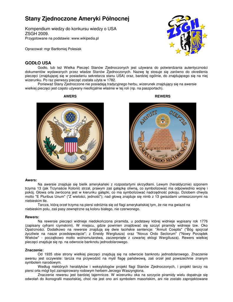 Godło, lub też Wielka Pieczęć Stanów Zjednoczonych jest używana do potwierdzania autentyczności