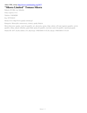 "Sikora Limited" Tomasz Sikora, Sulecin, Lipowa 14 A