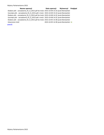 Wybory Parlamentarne 2015 Nazwa operacji Data operacji Wytworzył Dodano plik - zarzadzenie_91_O_2015.pdf do treści 2015-10-09 15:10 Jacek Bereżański Usunięto plik - zarzadzenie_91_O_2015.pdf z treści 2015-10-09 15:10 Jacek Bereżański Dodano plik - zarzadzenie_91_O_2015.pdf do treści 2015-10-08 14:32 Jacek Bereżański Usunięto plik - zarzadzenie_91_O_2015.pdf z treści 2015-10-08 14:32 Jacek Bereżański Dodano plik - zarzadzenie_91_O_2015.pdf do treści 2015-10-05 14:38 Jacek Bereżański Utworzono treść powrót Wybory Parlamentarne 2015 2015-10-05 14:38 Jacek Bereżański Podgląd