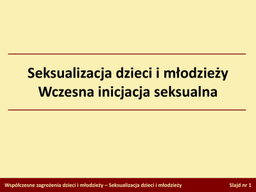 SEKSUALIZACJA ZAGROŻENIEM DLA DZIECI i MŁODZIEŻY