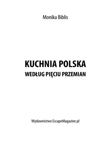 Monika Biblis KUCHNIA POLSKA WEDŁUG PIĘCIU PRZEMIAN Wydawnictwo EscapeMagazine.pl Kuchnia polska według Pięciu Przemian Monika Biblis Wydanie drugie, Toruń 2013 ISBN: 978-83-61744-60-3 (edycja drukowana) 978-83-61744-08-5 (edycja elektroniczna) Wszelkie prawa zastrzeżone! Autorzy oraz Wydawnictwo dołożyli wszelkich starań, aby informacje zawarte w tej publikacji były kompletne, rzetelne i prawdziwe. Autorzy oraz Wydawnictwo nie ponoszą żadnej odpowiedzialności za ewentualne szkody wynikające z wykorzystania informacji zawartych w publikacji lub użytkowania tej publikacji. Wszystkie znaki występujące w publikacji są zastrzeżonymi znakami firmowymi bądź towarowymi ich właścicieli. Rozpowszechnianie całości lub fragmentu w jakiejkolwiek postaci jest zabronione. Kopiowanie, kserowanie, fotografowanie, nagrywanie, wypożyczanie, powielanie w jakiekolwiek formie powoduje naruszenie praw autorskich. bezpłatny fragment Wydawnictwo EscapeMagazine.pl http://www.EscapeMagazine.pl Dedykuję Rodzicom: Basi i Zbyszkowi – moim pierwszym wzorcom Yin i Yang Spis treści Słowo do wydania drugiego Wstęp I. Cel jedzenia II. Cudze chwalicie, swego nie znacie III. Pochwalmy też cudze Pięć Przemian Obieg karmiący Obieg kontrolny Zasada Yin-Yang IV. Droga do zdrowia Krok 1: Jaki to smak? Pięć smaków Smak kwaśny Smak gorzki Smak słodki Smak ostry Smak słony Podsumowanie Smak końcowy Równoważenie smaków Preferencje smakowe Krok 2: Ciepłe czy zimne? Produkty Yin i Yang Równoważenie sił Jangizownanie i jinizowanie produktów Krok 3: Co mamy za oknem? Pory roku i klimaty Daty pięciu pór roku Wiosna Lato Dojo (późne lato) Jesień Zima Podsumowanie Krok 4: Jak się dziś czujesz? Pięć emocji Złość Radość Troska Smutek Strach Jak emocje wpływają na nasz organizm? Emocje a smaki Emocje a gotowanie Krok 5: Która godzina? Zegar organów, czyli co i kiedy jeść Regularność jedzenia Przykładowy jadłospis na 3 dni Krok 6: Eksperymentuj i gotuj radośnie! V. Praktyczne porady Ogień czy prąd? Naczynia Pięć sposobów przygotowywania żywności Przechowywanie żywności Mrożone pierogi z mięsem Przechowywanie surowców Zioła 5 Przyjmowanie pokarmu VI. Nauka gotowania Jajecznicowe wariacje Jajecznica – przepis podstawowy Jajecznica z pomidorami Jajecznica na boczku / kiełbasie Jajecznica z pieczarkami/grzybami Zupy Zupy kwaśne Zupa pomidorowa inaczej VII. Przepisy Zupy Owsianka miksowana Owsianka z suszem Krupnik jaglany Krupnik jęczmienny Krupnik gryczany na gęsi Rosół Żurek Zupa pomidorowa na maśle Zupa ogórkowa Zupa cebulowa Zupa dyniowa Barszcz czerwony z fasolą Potrawy wegetariańskie Energetyczne musli Mieszanka bakaliowa z kefirem Omlet podstawowy Omlet z marchewką Grzanki z patelni Grzanki czosnkowe Kasza jęczmienna– przepis podstawowy 6 Kasza gryczana – przepis podstawowy Kasza jaglana – przepis podstawowy Ryż – przepis podstawowy Kuskus – przepis podstawowy Soczewica – przepis podstawowy Fasola – przepis podstawowy Gotowane ziemniaki Puree ziemniaczane Puree z groszkiem Lane kluski Kopytka Kluski śląskie Kluski leniwe Naleśniki z trzech mąk Naleśniki razowe Naleśniki staropolskie z nadzieniem Placki ziemniaczane Placki z jabłkami Kotlety jaglane Duszonka z papryką Kapusta z grochem Fasola w sosie warzywnym Szybki groszek z fasolą Sałatka jarzynowa Surówka z marchwi i jabłek Jogurt ziołowy Potrawy mięsne Wołowina z fasolą Indyk w jarzynach z cynamonem Kurczak w cebuli Kotlety mielone Pulpety z jagnięciny 7 Pulpety wołowo-indycze w sosie Filety rybne Gulasz indyczo-cielęcy Wątróbka z cebulą Staropolskie zrazy wołowe Bigos staropolski Placek po zbójnicku Fasola po bretońsku Dodatki do kanapek Masło czosnkowe Pasta jajeczno-serowa Pasta ze słonecznika Twarożek śniadaniowy wiosenny Pasztet z soczewicy Pasztet mięsny Sosy i farsze Sos indyczy Sos wieprzowy Sos wołowy Sos pieczarkowo-cebulowy Sos cebulowo-marchewkowy Sos pomidorowy Farsz cebulowy Farsz szpinakowo-czosnkowy Farsz z kapusty Pieczywo Chleb domowy na zakwasie Chleb drożdżowy Bułki pszenno-żytnie Słodkości Jabłecznik Dominiki Jogurt na słodko 8 Kanapki a la nutella Pieczone gruszki z miodem Słonecznikowa pychotka Ciasto marchewkowe Piernik Faworki Kutia pszeniczna z bakaliami Przetwory Ogórki kiszone Dynia w occie Dżem owocowy Szybki dżem truskawkowy Napoje Kawa gotowana pięć smaków Kawa zbożowa gotowana Herbatka wiosenno-letnia Herbatka z lukrecją Herbatka ziołowa ze stewią Herbatka ziołowa z macierzanką Czarna herbata z goździkiem Zioła na przeziębienie Napój imbirowy Dodatek 1. Skorowidz produktów Dodatek 2. Miary i wagi Dodatek 3. Tabelki smaków Smak kwaśny Smak gorzki Smak słodki Smak ostry Smak słony Bibliografia 9 Słowo do wydania drugiego „Kuchnia polska według Pięciu Przemian” została wydana cztery lata temu. Była to wtedy pierwsza w Polsce książka elektroniczna o tej tematyce i m.in. dlatego zdecydowałam się ją napisać i wydać w takiej formie. Po czterech latach nadeszła pora, aby wydać ją w formie książka papierowej. Stało się tak, podobnie jak z trzema innymi tytułami, za sprawą nacisków we strony samych Czytelników. „Kuchnia polska”, choć ukazuje się w formie tradycyjnej jako czwarta, jest tak naprawdę pierwszą książką, którą napisałam. Książka, której nie udało mi się wówczas, w dosyć niespokojnych dla mnie czasach, odpowiednio wykończyć, wygłaskać, wytulić, jak pierwsze dziecko, które się kocha, ale dla którego brak nam wystarczająco dużo czasu… Mogłam nadrobić to teraz i uzbrojona w większą niż cztery lata temu wiedzę, z nowymi refleksjami i przemyśleniami, oddaję książkę lepszą, wzbogaconą nie tylko o więcej przepisów i treści, ale też miejscami całkiem zmienioną. Pięć Przemian to nie tylko przepisy. To magia, która powstaje, gdy bierzemy w dłonie produkty, kroimy je i poszczególne smaki łączą się ze 