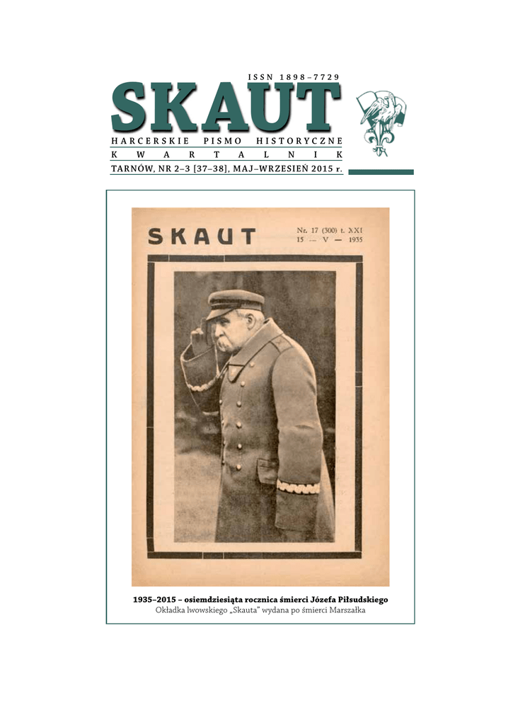 SKAUT ISSN 1898–7729 HARCERSKIE PISMO HISTORYCZNE K W A R T A L N I K TA R NÓW, N R 2–3 [37–3 8], M A J–W R Z E SI E Ń 2015 r. 1935–2015 – osiemdziesiąta rocznica śmierci Józefa Piłsudskiego Okładka lwowskiego „Skauta” wydana po śmierci Marszałka OD REDAKCJI Dziesięć lat minęło… nie wiadomo kiedy. W tym czasie „Skaut”, zamieszczając na swych łamach materiały historyczne, sam stał się częścią historii Harcerstwa. Była to piękna dekada. Nie były to też łatwe lata. Nie zawsze bowiem starczało czasu i sił, by kolejny numer dotarł do czytelników w zakładanym czasie. Pismo nie może istnieć bez odbiorców jego treści. Czytelników na szczęście mamy bardzo wielu, co wiemy z licznej korespondencji i reakcji na zamieszczane materiały. HARCERSKIE PISMO HISTORYCZNE 10 L AT WSPÓLNEGO REDAGOWANIA w różnych zawodach i nad tym wszystkim unoszący się duch współczesności, czyli możliwość komunikowania się przez Internet. Praca naszej redakcji pozostaje społeczna. W ciągu dziesięciu lat udało się wypełnić tekstem oraz ilustracjami 564 strony pisma. Za tę pracę i poświęcony czas, wszystkim współredaktorom oraz autorom serdecznie dziękuję. Mam też nadzieję, że ta harcerska przygoda wydawnicza, trwać będzie jeszcze długie lata. To, że tematy poruszane w „Skaucie” budzą zainteresowanie czytelników, wskazują odniesienia na wielu stronach internetowych, kierujące do strony „Skauta”. Przykładem tego niech będzie też materiał zamieszczony w poprzednim numerze, opisujący los przedwojennego Ośrodka Kształcenia Starszyzny Harcerskiej w Górkach Wielkich. W tym numerze, prezentujemy list hm. Tadeusza Dobrowolskiego do Aleksandra Kamińskiego. List obrazuje ostanie tygodnie działania Ośrodka. W numerze kontynuujemy także publikację odnalezionych artykułów o Andrzeju Małkowskim. ■ Marek Popiel TARNÓW 2015 Pamiątkowa plakieta przekazana współredaktorom „Skauta” SKAUT. HARCERSKIE PISMO HISTORYCZNE© REDAKCJA: Lesław Dall – Zakopane, Wiesław Kukla – Poznań, Janusz Krężel – Mielec, Marian Miszczuk – Warszawa, To, że tak się dzieje jest zasługą współredaktorów „Skauta”, ich wiedzy, talentów pisarskich i graficznych, zaangażowania, cierpliwości oraz bezinteresownego udostępniania materiałów historycznych. I tu ciekawostka… redaktorzy nigdy nie spotkali się w jednym miejscu razem. W różnych kombinacjach i owszem. Powodów tego jest kilka: spore odległości pomiędzy Tarnowem, Poznaniem, Warszawą, Zakopanem i Mielcem; wiek więcej niż dojrzały; praca nr 2–3 [37–38] SKAUT str. 2 Marek Karpiński (grafika) – Tarnów, Marek Popiel (red. naczelny, odpowiedzialny i wydawca). 33–100 Tarnów, ul. Krakowska 42/9, tel. 667 174 232 [email protected] www.skaut.okay.pl SKAUT jest bezpłatnym harcerskim pismem niezależnym. Wszelkie prawa zastrzeżone ©1996–2015. Przedruk za zgodą redakcji, za wskazaniem źródła i autora. Teksty i przesłane materiały redakcja publikuje nieodpłatnie. Przedsięwzięcie o charakterze non profit. B I O G R A F I E [Anonim] Ś. P. POR. ANDRZEJ MAŁKOWSKI „Polak (Le Polonais)”, Paryż, 21 marca 1919, nr 138, s. 6–7. Winieta pisma „Polak” z 1919 r. (ze zbiorów Biblioteki Polskiej w Paryżu) Czytelnicy nasi przypominają sobie tragiczną śmierć por. A. Małkowskiego d. 16 stycznia, podczas zatonięcia okrętu Chaouia. Obecnie jeden z jego znajomych przysłał nam następujące wspomnienie o zmarłym: Por. Andrzej Małkowski, mimo najbardziej nieprzyjaznych warunków, pracował wciąż z nigdy niegasnącym zapałem dla swojego ukochanego ideału, którym była wolna, niepodległa Polska. Jeszcze jako 15-letni chłopak organizuje w Krakowie «Młodzież» towarzystwo abstynenckie i z całym zapałem oddaje wszystek czas wolny od nauki – pracy nad uświadomieniem narodowem młodzieży. Będąc studentem wszechnicy lwowskiej, należy tow. «Kuźnica». Do «drużyn strzeleckich» i wszędzie wnosi z sobą zapał i gorące umiłowanie najczystszych ideałów. W r. 1911-tym zakłada polskiego «Skauta», który dziś liczy tysiące członków. W początkach wojny wstąpił do Legjonów Piłsudskiego, potem wystąpił z nich i wyjechał z kraju, aby walczyć przeciwko Niemcom. Staraniu jakie czynił w Anglji, by być przyjętym do armji angielskiej, spełzły na niczem z powodu, że był cudzoziemcem. W tym czasie otrzymał wezwanie od ówczesnego sekretarza Z. N. P. w Ameryce, by przejechał organizować skautostwo polskie w szeregach naszej młodzieży w St. Zjednoczonych. Pospieszył tam, a w duszy marzył o stworzeniu samodzielnej armji polskiej. Wkrótce potem – było to już w r. 1916 – wstąpił w szeregi armji kanadyjskiej. Kiedy powstała Armja Polska we Francji nie ustawał w zachodach, by się do tej Armji dostać, lecz formalności wlokły się nieskończenie długo, aż nareszcie uzyskał upragnione przeniesienie, na dwa tygodnie przed zawieszeniem broni. Czuł się szczęśliwym i z zapałem wziął się do pracy. Naczelne Dowództwo wyznaczyło go na członka misji wojskowej do Odes[s]y wraz z por. Rudlickim. W drodze do Odes[s]y por. Małkowski znalazł śmierć w cieśninie mesyńskiej, gdyż okręt wiozący go wyleciał w powietrze na zabłąkanej minie. ■ *** T. Strumiłło Zaś od żony zmarłego, p. Olgi Małkowskiej otrzymujemy następujący piękny wiersz poświęcony pamięci męża. nr 2–3 [37–38] SKAUT str. 3 Olga Małkowska NA POSTERUNKU… Na posterunku padłeś jak przystało Synowi Polski. Życie dałeś młode – I dziś przed Bogiem stanąć możesz śmiało, Aby niebieską legję wziąć w nagrodę. Bo życie twoje było jednym bojem, Cichym lecz ciężkim, bez rozgłosu, sławy. Teraz nań spojrzeć możesz ze spokojem – Wszystkoś w nim złożył na ołtarzu Sprawy. Wśród dni minionych ziemskiego łańcucha Byłeś tym szałem, co nieba otwiera, Byłeś tym siewcą, co w pełn