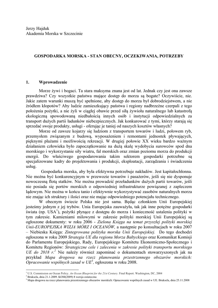 Jerzy Hajduk Akademia Morska w Szczecinie GOSPODARKA
