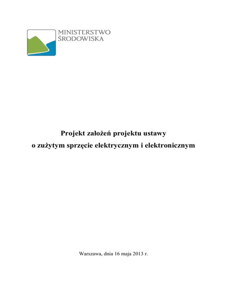 Projekt założeń projektu ustawy o zużytym sprzęcie elektrycznym i elektronicznym Warszawa, dnia 16 maja 2013 r. 1. Cel projektowanej regulacji. Uzasadnienie opracowania projektu ustawy o zużytym sprzęcie elektrycznym i elektronicznym stanowi dokonanie transpozycji przepisów prawa Unii Europejskiej dotyczących gospodarowania sprzętem elektrycznym i elektronicznym oraz odpadami pochodzących z wprowadzania do obrotu przedmiotowych produktów. System zarządzania zużytym sprzętem elektrycznym i elektronicznym, zwanym dalej „zużytym sprzętem”, został utworzony na mocy dyrektywy Parlamentu Europejskiego i Rady 2002/96/WE z dnia 27 stycznia 2003 r. w sprawie zużytego sprzętu elektrotechnicznego i elektronicznego (WEEE) (Dz. Urz. UE L 37/24 z 13.02.2003 r., z późn. zm.), zwanej dalej „dyrektywą 2002/96/WE”. Przyjęcie ww. aktu normatywnego było odpowiedzią Unii Europejskiej na narastający problem pozbywania się przez konsumentów zużytego sprzętu w nieprawidłowy sposób, tj. do pojemników nieodpowiednich dla tego rodzaju odpadów lub co gorsza na tereny leśne czy w punktach skupu złomu. Większość zużytego sprzętu elektrycznego i elektronicznego zawiera substancje niebezpieczne, w szczególności: rtęć, freon, ołów. Pozostawione odpady w miejscach nieprzeznaczonych do odpowiedniego zagospodarowania mogą stać się niebezpieczne dla zdrowia i życia ludzi oraz środowiska naturalnego. Celem dyrektywy 2002/96/WE było ograniczenie liczby zużytego sprzętu oraz zwiększenie poziomu ponownego użycia takich odpadów, ich recyklingu i innych form odzysku. Ponadto, przepisy dyrektywy zawierają regulacje dotyczące funkcjonowania podmiotów zaangażowanych w cykl życia sprzętu elektrycznego i elektronicznego tj.: wprowadzających sprzęt do obrotu w Unii Europejskiej, konsumentów oraz podmiotów zajmujących się bezpośrednio zbieraniem zużytego sprzętu i jego dalszym przetwarzaniem. Obecnie zasady postępowania ze zużytym sprzętem elektrycznym i elektronicznym w Polsce normowane są przepisami ustawy z dnia 29 lipca 2005 r. o zużytym sprzęcie elektrycznym i elektronicznym (Dz. U. Nr 180, poz. 1495, z późn. zm.). Ustawa definiuje istotne dla systemu gospodarowania zużytym sprzętem pojęcia, w szczególności wprowadzającego sprzęt, zbierającego zużyty sprzęt, procesu przetwarzania, czy punktu skupu złomu. W przedmiotowym akcie prawnym, zgodnie z dyrektywą 2002/96/WE, określono obowiązki poszczególnych przedsiębiorców prowadzących działalność w zakresie wprowadzania sprzętu, zbierania zużytego sprzętu, przetwarzania, recyklingu oraz innych niż recykling procesów odzysku, a także organizacji odzysku sprzętu elektrycznego i elektronicznego. Wyżej Projekt założeń ustawy ZSEE wymienione podmioty chcące prowadzić działalność 2 we wskazanym zakresie obowiązane są do dokonania rejestracji w rejestrze prowadzonym przez Głównego Inspektora Ochrony Środowiska, zwanego dalej „GIOŚ”. Ustawa z dnia 29 lipca 2005 r. o zużytym sprzęcie elektrycznym i elektronicznym określa zadania Inspekcji Ochrony Środowiska w ramach prowadzenia przedmiotowego rejestru, sprawozdawczości oraz kontroli systemu. Należy przy tym zaznaczyć, iż zgodnie z ustawą z dnia 14 grudnia 2012 r. o odpadach (DZ. U. z 2013 r., poz. 21) GIOŚ będzie prowadził przedmiotowy rejestr do czasu utworzenia rejestru, o którym mowa w art. 49 ust. 1 ww. ustawy. Mocą postanowień ustawy nałożono na wprowadzających sprzęt przeznaczony dla gospodarstw domowych obowiązek zebrania co roku określonej masy zużytego sprzętu pochodzącego z gospodarstw domowych w wysokości stanowiącej co najmniej 35% masy wprowadzonego na rynek sprzętu w poprzednim roku kalendarzowym. Poziom zbierania został określony z uwzględnieniem konieczności osiągnięcia przez Polskę unijnego celu zbierania wynoszącego 4 kg zużytego sprzętu na mieszkańca, co stanowi ok. 150 tys. ton dla całego kraju rocznie. W przypadku nieuzyskania przez wprowadzającego sprzęt przeznaczony dla gospodarstw domowych odpowiedniego poziomu zbierania jest on obowiązany do uiszczenia opłaty produktowej. Ponadto, ustawa wskazuje na konieczność osiągnięcia przez wprowadzających sprzęt odpowiednich poziomów odzysku oraz recyklingu (nieosiągnięcie tych poziomów skutkuje obowiązkiem uiszczenia opłaty produktowej), a także prowadzenia kampanii edukacyjnych dla konsumentów z obowiązkiem przeznaczenia na ten cel 0,1% przychodów wprowadzającego sprzęt z tytułu wprowadzania go do obrotu. Ustawa z dnia 29 lipca 2005 r. o zużytym sprzęcie elektrycznym i elektronicznym umożliwia również przejęcie obowiązków nałożonych na wprowadzających sprzęt przez organizacje odzysku sprzętu elektrycznego i elektronicznego. Podmioty takie powinny prowadzić działalność w formie spółki akcyjnej z kapitałem zakładowym wynoszącym minimum 5 mln zł. Przedsiębiorcy wprowadzający sprzęt przeznaczony dla gospodarstw domowych, którzy nie zawarli stosownej umowy z organizacją odzysku obowiązani są do wniesienia zabezpieczenia finansowego na dany rok kalendarzowy przeznaczonego na sfinansowanie zbierania, przetwarzania, odzysku i unieszkodliwiania zużytego sprzętu elektrycznego i elektronicznego pochodzącego z gospodarstw domowych. W 2012 r. dyrektywa 2002/96/WE została uchylona na podstawie dyrektywy Parlamentu Europejskiego i Rady 2012/19/UE z dnia 4 lipca 2012 r. w sprawie zużytego sprzętu elektrycznego i elektronicznego (WEEE) (Dz. Urz. UE L 197/38 z 24.07.2012 r.), zwanej dalej „dyrektywą 2012/19/UE”. Przepisy dyrektywy 2012/19/UE wprowadzają istotne Projekt założeń ustawy ZSEE 3 zmiany dla rynku zużytego sprzętu w poszczególnych państwach członkowskich Unii Europejskiej, w tym w Polsce. Termin implementacji przedmiotowego aktu normatywnego do polskiego porządku prawnego upływa w dniu 14 lutego 2014 r. W związku z powyższym, konieczne jest