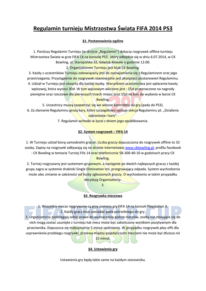 Regulamin turnieju Mistrzostwa Świata FIFA 2014 PS3