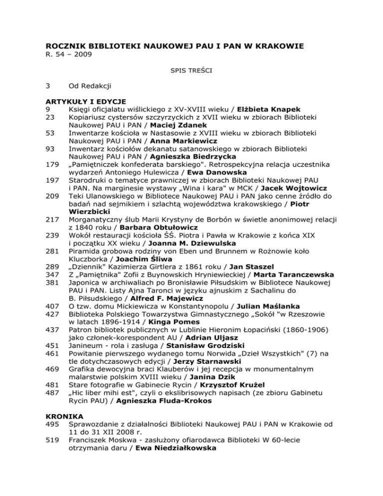 ROCZNIK BIBLIOTEKI NAUKOWEJ PAU I PAN W KRAKOWIE