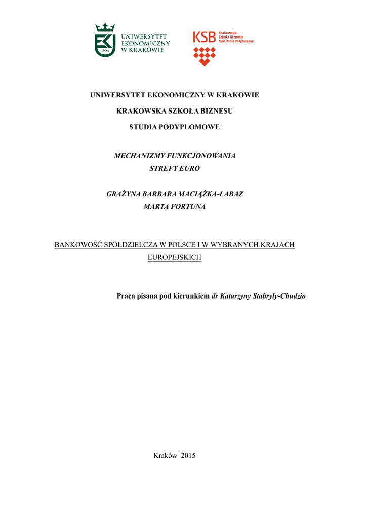 Bankowość Spółdzielcza w Polsce i w wybranych krajach