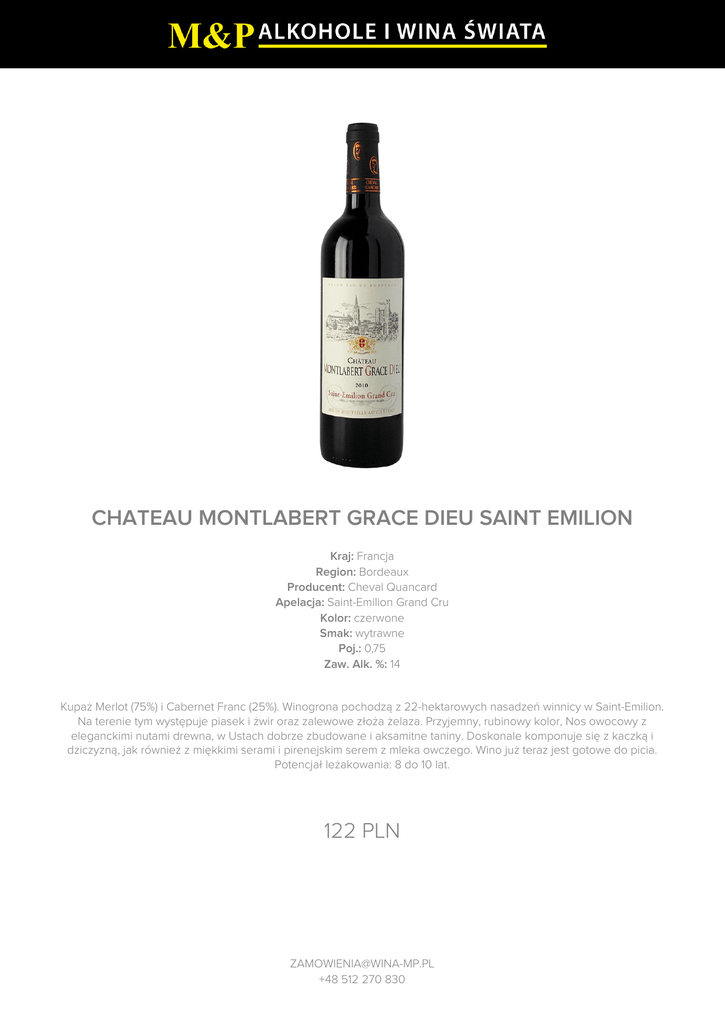 CHATEAU MONTLABERT GRACE DIEU SAINT EMILION 122 PLN