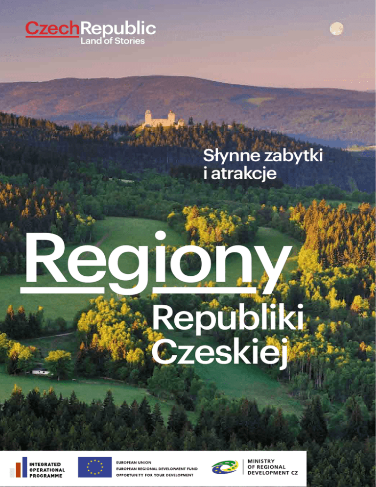 Słynne zabytki i atrakcje Regiony Republiki Czeskiej Czeska Szwajcaria Mikulov Czechy kraina opowieści Wycieczka rodzinna Praga Legenda Czym może pochlubić się kraj leżący w samym sercu Europy? Niepowtarzalną atmosferą miast lub krajobrazami zapierającymi dech w piersiach, które swym pięknem inspirowały i wciąż inspirują nie tylko wielu artystów, ale także wszystkich ludzi, umiejących docenić zadziwiające bogactwo cudów natury. zabytek UNESCO wędrówki stolica regionu wycieczki rowerowe zamek, pałac rejs łodzią i rafting zabytek sakralny pływanie dziedzictwo kulturowe wędkowanie zabytek kultury żydowskiej golf zabytek militarny narciarstwo zjazdowe architektura nowoczesna biegi narciarskie architektura industrialna jazda konna muzeum wzniesienie spa pomnik przyrody przystań jaskinia rzeka park narodowy Miłośnicy aktywnego wypoczynku znajdą tu przepiękne góry i doliny z siecią ścieżek rowerowych i szlaków turystycznych, tras zjazdowych i biegowych. Miłośników wody zachwycą malownicze stawy rybne i jeziora polodowcowe, zapory wodne i górskie strumienie. Ci zaś, którzy preferują relaks, mogą skorzystać z dobroczynnych zabiegów w jednym ze słynnych czeskich kurortów, zaś romantyczne dusze z pewnością oczaruje piękno zamków i pałaców. Twój podziw wzbudzi także bogata historia narodu czeskiego. Podróżując po różnych regionach naszego kraju będziesz miał okazję posmakować tradycyjnej kuchni czeskiej, jak również licznych gatunków piwa i wina. Czy wiedziałeś, że ten niewielki kraj w środku Europy, otoczony wieńcem granicznych gór, zasiedlony przez Słowian i tworzony przez historyczne ziemie Czech, Moraw i Śląska, był od dawien dawna miejscem krzyżowania się europejskich szlaków handlowych? Tu splatały się również ważne interesy ekonomiczne i państwowe oraz różne kultury. Przekonaj się więc sam, że Republika Czeska ma wiele do zaoferowania. Życzymy jak najwspanialszych wrażeń! www.czechtourism.com 1 Most Karola Praga Magiczna atmosfera, jakiej nie znajdziesz w żadnym innym miejscu Zamek Praski Historyczne centrum Pragi wpisane jest na Listę Światowego Dziedzictwa. Niepowtarzalna, zniewalająca atmosfera miasta oczaruje każdego turystę. Zamek Praski Zamek Praski jest największym kompleksem zamkowym na świecie. Jego urzekająca panorama z pewnością pozostanie w pamięci wszystkich odwiedzających stolicę kraju. Na Zamek Praski można dojechać z centrum miasta tramwajem nr 22. www.hrad.cz Śladami Franza Kafki Praga uważana jest za jedną z najpiękniejszych metropolii świata. Dlatego nazywa się ją „Matką miast“. Historyczne centrum pyszni się różnorodnością stylów architektonicznych od gotyku po secesję czy modernizm. www.praguewelcome.cz 2 Regiony Republiki Czeskiej Na Zamku Praskim w latach 1916 –1917 w Złotej Uliczce pod numerem 22 mieszkał pisarz Franz Kafka. Dzieje sławnego mieszkańca Pragi poznasz bliżej zwiedzając jego muzeum w dzielnicy Malá Strana. www.kafkamuseum.cz Most Karola Polecamy romantyczną przechadzkę po Moście Karola, należącym do najsłynniejszych zabytków praskich. Jest on także jednym z najstarszych zachowanych mostów w Czechach. Przyciąga tłumy zwiedzających nie tylko dzięki swej szczególnej magii – rozciąga się z niego niepowtarzalny widok na Pragę! Rynek Staromiejski Najstarszy rynek Pragi – Staromiejski (czes. Staroměstské náměstí), powstał jako targowisko na skrzyżowaniu europejskich szlaków handlowych. Jedną z jego dominant jest gotycki Ratusz Staromiejski ze sławnym zegarem wieżowym (Orloj), którego największą atrakcją jest ruchoma procesja dwunastu apostołów. Pojawia się ona w okienkach zegara wieżowego każdego dnia co godzinę. Vyšehrad Podziwiaj najpiękniejszy widok na Pragę. Vyšehrad jest jedną z dominant Pragi – miejsce o bogatej historii osnute wieloma legendami z zarania czeskich dziejów. Na skale nad Wełtawą wznoszą się dwie wieże Katedry św. Piotra i Pawła. Odwiedź to miejsce, aby rozkoszować się wspaniałym widokiem na Pragę! Na pewno nie zawiedziesz się, bo Vyšehrad oferuje również przyjemny odpoczynek wśród swej zieleni. www.praha-vysehrad.cz Praskie Miasto Żydowskie Polecamy zwiedzenie najbardziej tajemniczego miejsca w Pradze. Praskie Miasto Żydowskie, czyli Josefov jest jednym z najcenniejszych zabytków żydowskich na świecie. Odwiedź Stary Cmentarz Żydowski, zajrzyj do Synagogi Pinkasa, która jest zarazem pomnikiem ofiar holocaustu. Na jej ścianach widnieją nazwiska czeskich Żydów, którzy zginęli podczas drugiej wojny światowej. Podczas wędrówki przez tę niezwykłą dzielnicę warto też wstąpić do Synagogi Staro – Nowej, najstarszej zachowanej synagogi w środkowej Europie, która do dziś służy jako bóżnica. www.jewishmuseum.cz Zamek Praski Malá Strana Most Karola Praskie Miasto Żydowskie Rynek Staromiejski Vyšehrad Codziennie aż do godziny 22:00 można podziwiać Pragę z wieży Ratusza Staromiejskiego. www.czechtourism.com 3 Zamek Konopiště Czechy Środkowe W poszukiwaniu romantyki Wokół Pragi rozciąga się urozmaicona kraina, przez którą w głębokich dolinach wiją się rzeki o brzegach porośniętych gęstymi lasami. Romantyczny urok środkowych Czech podkreśla zróżnicowana rzeźba terenu, z malowniczymi formacjami piaskowcowymi, jak również nieprzebrana ilość wspaniałych zamków i pałaców. www.middleczech.cz 4 Regiony Republiki Czeskiej W lecie polecamy festiwal międzygatunkowy Lato na Křivoklacie, a przed świętami Bożego Narodzenia jarmark adwentowy połączony z okolicznościowym programem. www.krivoklat.cz Kutná Hora – Katedra św. Barbary Zamek Karlštejn Zamek Křivoklát Zamek ten, należący do najliczniej zwiedzanych obiektów historycznych, leży w dolinie rzeki Berounki. Majestatyczny Karlštejn wzniósł król czeski i cesarz rzymski Karol IV, aby przechowywać w nim skarby królewski