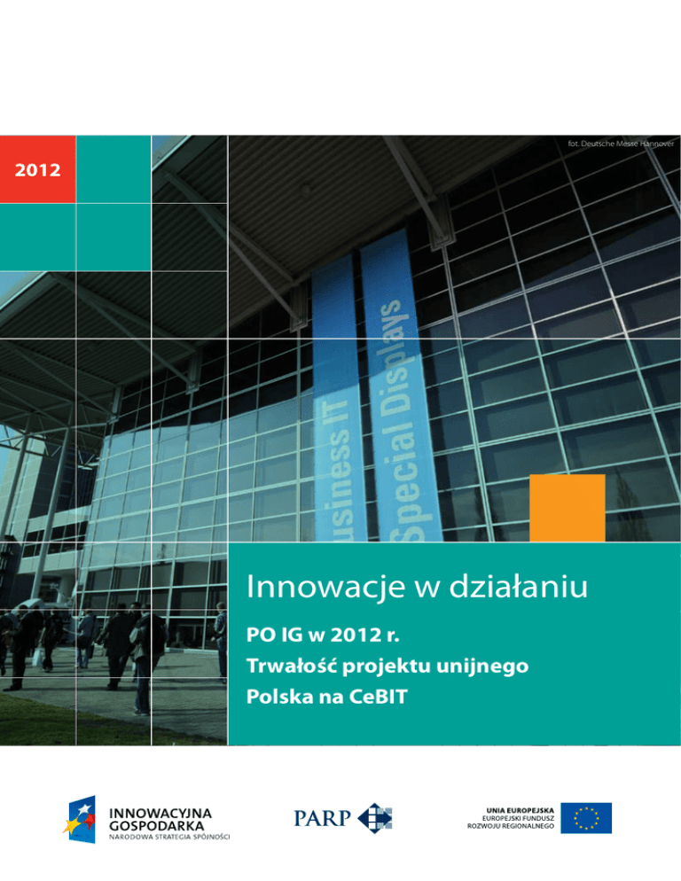 fot. Deutsche Messe Hannover 2012 Innowacje w działaniu PO IG w 2012 r. Trwałość projektu unijnego Polska na CeBIT Spis treści str. 3 Wstęp str. 4-7 Innowacyjność to szansa dla Polski Rozmowa z prezes PARP Bożeną Lublińską-Kasprzak o wdrażaniu Programu Operacyjnego Innowacyjna Gospodarka (PO IG) w 2012 r. str. 8-10 Polska partnerem CeBIT W tym roku Polska jest partnerem strategicznym Międzynarodowych Targów Teleinformatycznych CeBIT. Udział w nich wezmą m.in. beneficjenci PO IG. str. 11 Medycyna i biznes Alice-Med to klaster z obszaru nauk medycznych, który wsparcie z PO IG wykorzystuje na rozwój wspólnych projektów i transfer technologii. str. 12 Własność przemysłowa. Majątek, którego nie widać Dzięki dotacji z PO IG krakowska firma QNC może chronić na światowych rynkach technologię nakładania powłoki lakierniczej. str. 13 Eksport zgodnie z planem Oferująca mobilne systemy wsparcia sprzedaży firma K3 System wykorzystuje „Paszport do eksportu” do ekspansji na rynki międzynarodowe. str. 14 Dwa w cenie jednego Dotacja z działania 8.1 PO IG umożliwiła serwisowi Dontpay rozwój rozwiązania do cross-sellingu w internecie. str. 15 Paliwowa rewolucja Innowacyjną sieć mikrostacji paliwowych buduje Ekopol Górnośląski Holding. Środki z PO IG wspierają wykorzystanie w projekcie nowoczesnych technologii. str. 16-17 Trwałość projektów PO IG Przez trzy lata od daty zakończenia projektu dofinansowanego z PO IG trzeba zachować jego trwałość. Co to oznacza dla beneficjenta? str. 18-19 (Bez)błędna promocja Co i jak oznakować? Która wersja znaku PO IG i kiedy jest właściwa? Promocja projektu unijnego wiąże się z przestrzeganiem określonych zasad. str. 20 Flesz Najważniejsze wydarzenia związane z PO IG w skrócie. Wydawca: Polska Agencja Rozwoju Przedsiębiorczości Publikacja bezpłatna, stan na grudzień 2012 r., ISSN 2299-5765 Realizacja: Smartlink sp. z o.o. Redaktor prowadzący: Krzysztof Garski Autorzy tekstów: Krzysztof Garski, Jerzy Gontarz, Krzysztof Orłowski, Joanna Pieńczykowska, Andrzej Szoszkiewicz, Waldemar Wierżyński Autorzy zdjęć: Franciszek Mazur, PARP, Smartlink, eutsche Messe Hannover, iStockphoto, beneficjenci Projekt: Piotr Kozielczyk Skład: Nina Dereszewicz Współpraca i konsultacje – PARP: Karolina Dorywalska, Paulina Jaworska © Copyright by Polska Agencja Rozwoju Przedsiębiorczości, Warszawa 2012 PARP, ul. Pańska 81/83, 00-834 Warszawa e-mail: [email protected], tel.: (22) 432 80 80, 432 71 25, fax: (22) 432 86 20 2 Biuletyn współfinansowany ze środków Europejskiego Funduszu Rozwoju Regionalnego w ramach Programu Operacyjnego Innowacyjna Gospodarka Szanowni Państwo, 2012 był dobrym rokiem dla rozwoju innowacyjnej gospodarki w Polsce. Do 16 listopada 2012 r. zatwierdzono do realizacji ponad 12,5 tys. projektów dofinansowanych z Programu Operacyjnego Innowacyjna Gospodarka (PO IG). Ich wartość to aż 39,03 mld zł, co oznacza, że wykorzystane zostało prawie 93% alokacji z Europejskiego Funduszu Rozwoju Regionalnego. Polskie firmy, instytucje naukowe i klastry udowodniły, że potrafią wykorzystać szansę rozwojową, jaką Polsce dają Fundusze Europejskie. Mimo początkowych obaw, że nie uda się sprawnie wykorzystać tak znacznych środków, zdecydowana większość alokacji z PO IG została zagospodarowana na przeszło rok przed końcem perspektywy finansowej Unii Europejskiej na lata 2007-2013. Beneficjenci prowadzonych przez Polską Agencję Rozwoju Przedsiębiorczości (PARP) działań PO IG mają znaczący udział w tym sukcesie. W niniejszym biuletynie przedstawiamy Państwu beneficjentów, którzy dzięki dotacjom z PO IG wprowadzili do swojego biznesu nowoczesne technologie, rozpoczęli ochronę własności przemysłowej, czy zdecydowali się na podjęcie działalności eksportowej. Opisywane w naszej publikacji dobre praktyki stanowią bodaj najlepsze podsumowanie działań PO IG, w których w 2012 r. PARP prowadziła nabór. Pokazują bowiem, że dzięki unijnym pieniądzom możliwe było zrealizowanie wielu ambitnych, ciekawych i nieraz zaskakujących projektów. Mam nadzieję, że przedstawione przykłady zainspirują do wdrażania innowacji kolejnych przedsiębiorców. Mijający rok przyniósł także dużą zmianę w PO IG, a mianowicie wprowadzenie pilotażowego działania „Wsparcie na pierwsze wdrożenie wynalazku”, z budżetem wynoszącym aż 616,18 mln zł. To swego rodzaju eksperyment, w którym zastosowano innowacyjną formę oceny wniosków o wsparcie. Po raz pierwszy o przyznaniu dotacji zadecyduje nie tylko ocena złożonego wniosku, ale i spotkanie beneficjenta z grupą ekspertów, którzy posiadają doświadczenie związane z wdrażaniem projektów w wielu instytucjach finansowych. Taka forma ewaluacji pozwoli na wyjątkowo wszechstronną ocenę innowacyjnych projektów firm z sektora MSP. Bożena Lublińska-Kasprzak Prezes PARP 3 WYWIAD Innowacyjność to szansa dla Polski O coraz bardziej innowacyjnych polskich firmach, wyzwaniach stojących przed przedsiębiorcami wdrażającymi nowości oraz o dużym zainteresowaniu dotacjami z Programu Operacyjnego Innowacyjna Gospodarka rozmawiamy z Bożeną Lublińską-Kasprzak, prezes Polskiej Agencji Rozwoju Przedsiębiorczości (PARP). Polska Agencja Rozwoju Przedsiębiorczości (PARP) wspiera innowacyjność polskich firm. Jak w skrócie podsumowałaby Pani dotychczasowe działania PARP w tym zakresie? Tworzenie korzystnych warunków dla rozwoju innowacyjności przedsiębiorstw to jeden z naszych celów strategicznych. Wspieramy wdrażanie i komercjalizację wyników badań naukowych, rozwój innowacyjnej infrastruktury dla firm (np. rozwój parków technologicznych, ekspansję zagraniczną przedsiębiorstw oraz rozwój nowoczesnych kadr). W bieżącej perspektywie finansowej na lata 2007-2013 PARP jest odpowiedzialna za wdrażanie wybranych działań w trzech programach operacyjnych: Innowacyjna Gospodarka, Ka