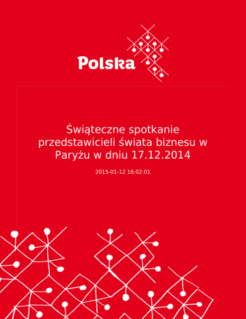 Świąteczne spotkanie przedstawicieli świata biznesu w Paryżu w dniu 17.12.2014 2015-01-12 16:02:01 2 Wydział Promocji Handlu i Inwestycji Ambasady RP we Francji zorganizował w dniu 17 grudnia 2014 roku tradycyjne spotkanie ze środowiskiem gospodarczym francusko-polskim, połączone z okolicznościowym przyjęciem. Gośćmi spotkania byli przedstawiciele francuskich firm współpracujących z Polską, a także firm polskich działających na terytorium Francji oraz przedstawiciele instytucji gospodarczych i mediów. To doroczne spotkanie zgromadziło w siedzibie WPHI w Paryżu ok. 70 osób. Spotkanie było doskonałą okazją dla Kierownika WPHI Janusza Pieńkowskiego do podsumowania działań WPHI w Paryżu w bieżącym roku oraz podziękowania wszystkim obecnym za dotychczasową współpracę. Pan Radca-Minister w swoim przemówieniu omówił wyniki i perspektywy współpracy gospodarczej polsko-francuskiej w sferze wymiany handlowej, inwestycji oraz świadczenia usług. Zaproszonych gości przywitała również Pani Marta Stachowiak, I radca, pełniąca funkcję chargé d'affaires a.i. w Ambasadzie RP we Francji. Grudniowe potkanie miało charakter informacyjno – promocyjny, którego celem było ułatwienie i zintensyfikowanie relacji pomiędzy polskimi i francuskimi podmiotami gospodarczymi. Wydarzenie to stanowiło doskonałą okazję do zaprezentowania potencjału polskiej gospodarki, przybliżenia perspektyw rozwoju polsko-francuskich stosunków gospodarczych oraz przedstawienia możliwości inwestycyjnych na polskim rynku. Wydział Promocji Handlu i Inwestycji Ambasady RP we Francji zorganizował w dniu 17 grudnia 2014 roku tradycyjne spotkanie ze środowiskiem gospodarczym francusko-polskim, połączone z okolicznościowym przyjęciem. Gośćmi spotkania byli przedstawiciele francuskich firm współpracujących z Polską, a także firm polskich działających na terytorium Francji oraz przedstawiciele instytucji gospodarczych i mediów. To doroczne spotkanie zgromadziło w siedzibie WPHI w Paryżu ok. 70 osób. Spotkanie było doskonałą okazją dla Kierownika WPHI Janusza Pieńkowskiego do podsumowania działań WPHI w Paryżu w bieżącym roku oraz podziękowania wszystkim obecnym za dotychczasową współpracę. Pan RadcaMinister w swoim przemówieniu omówił wyniki i perspektywy współpracy gospodarczej polsko-francuskiej w sferze wymiany handlowej, inwestycji oraz świadczenia usług. Zaproszonych gości przywitała również Pani Marta Stachowiak, I radca, pełniąca funkcję chargé d'affaires a.i. w Ambasadzie RP we Francji. Grudniowe spotkanie miało charakter informacyjno – promocyjny, którego celem było ułatwienie i zintensyfikowanie relacji pomiędzy polskimi i francuskimi podmiotami gospodarczymi. Wydarzenie to stanowiło doskonałą okazję do zaprezentowania potencjału polskiej gospodarki, przybliżenia perspektyw rozwoju polskofrancuskich stosunków gospodarczych oraz przedstawienia możliwości inwestycyjnych na polskim rynku. 3