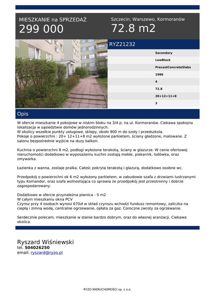 299 000 72.8 m2 - RYZO Nieruchomości Szczecin